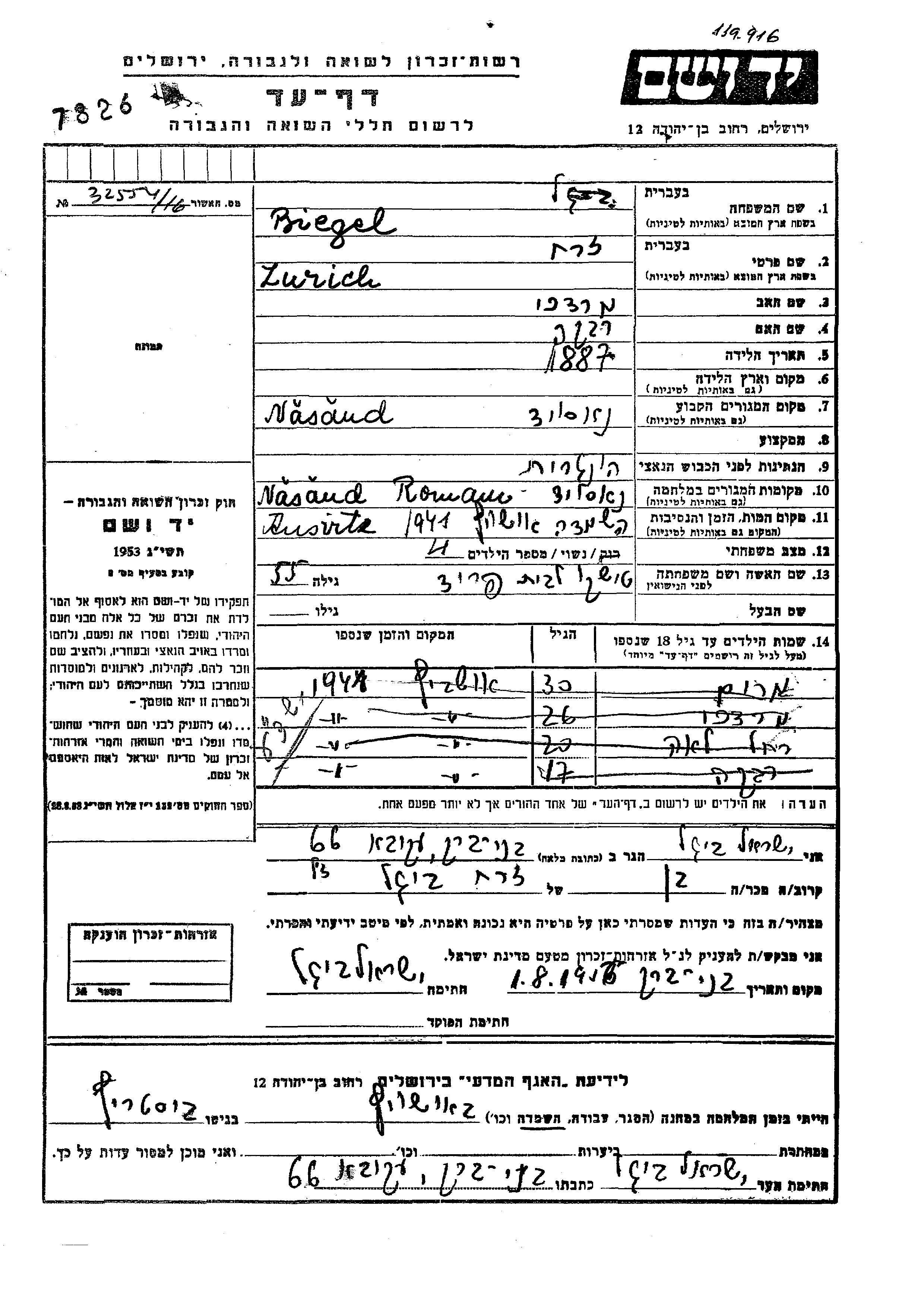 Yad Vashem - Pages of Testimony Names Memorial Collection