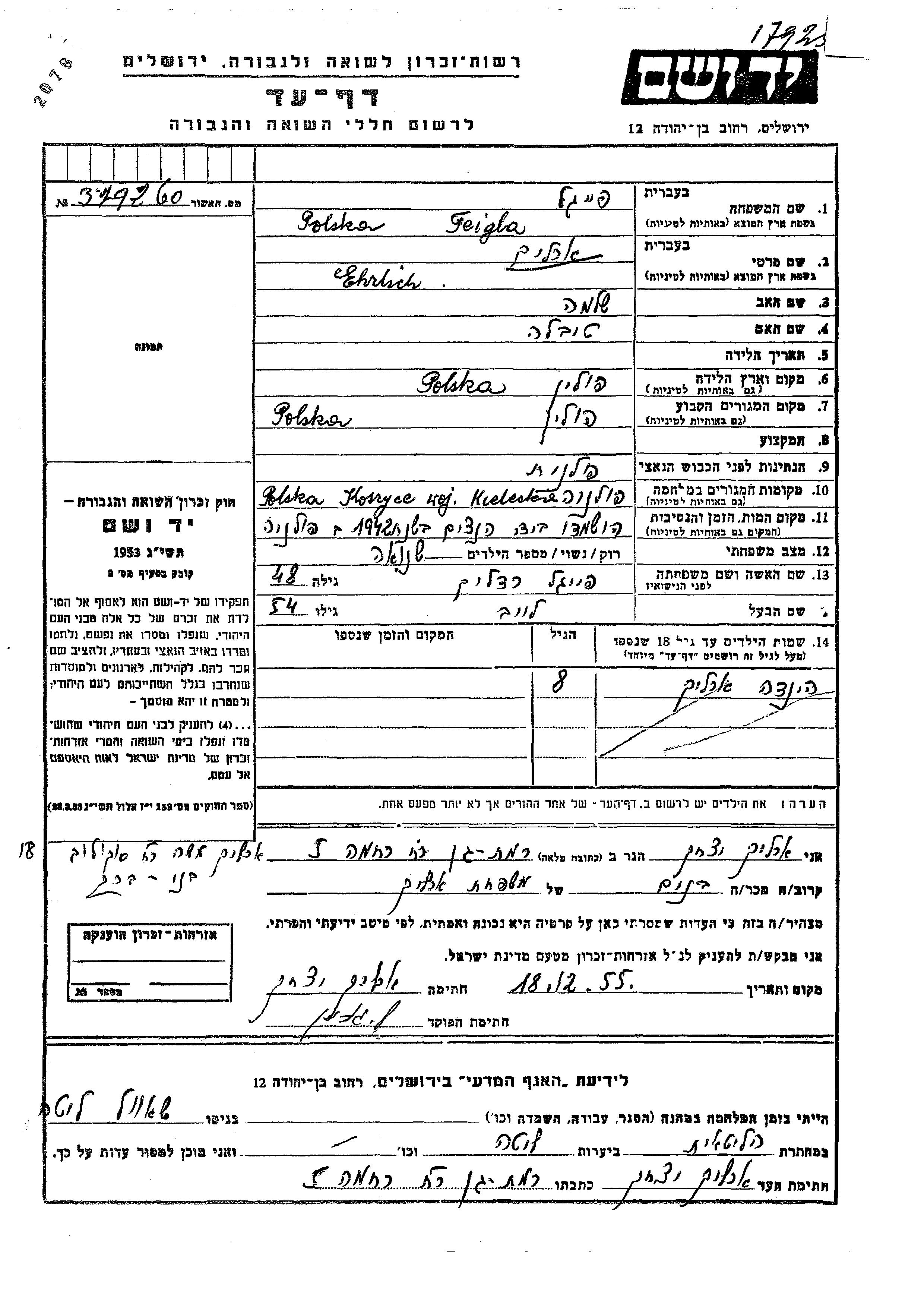 Yad Vashem - Pages of Testimony Names Memorial Collection