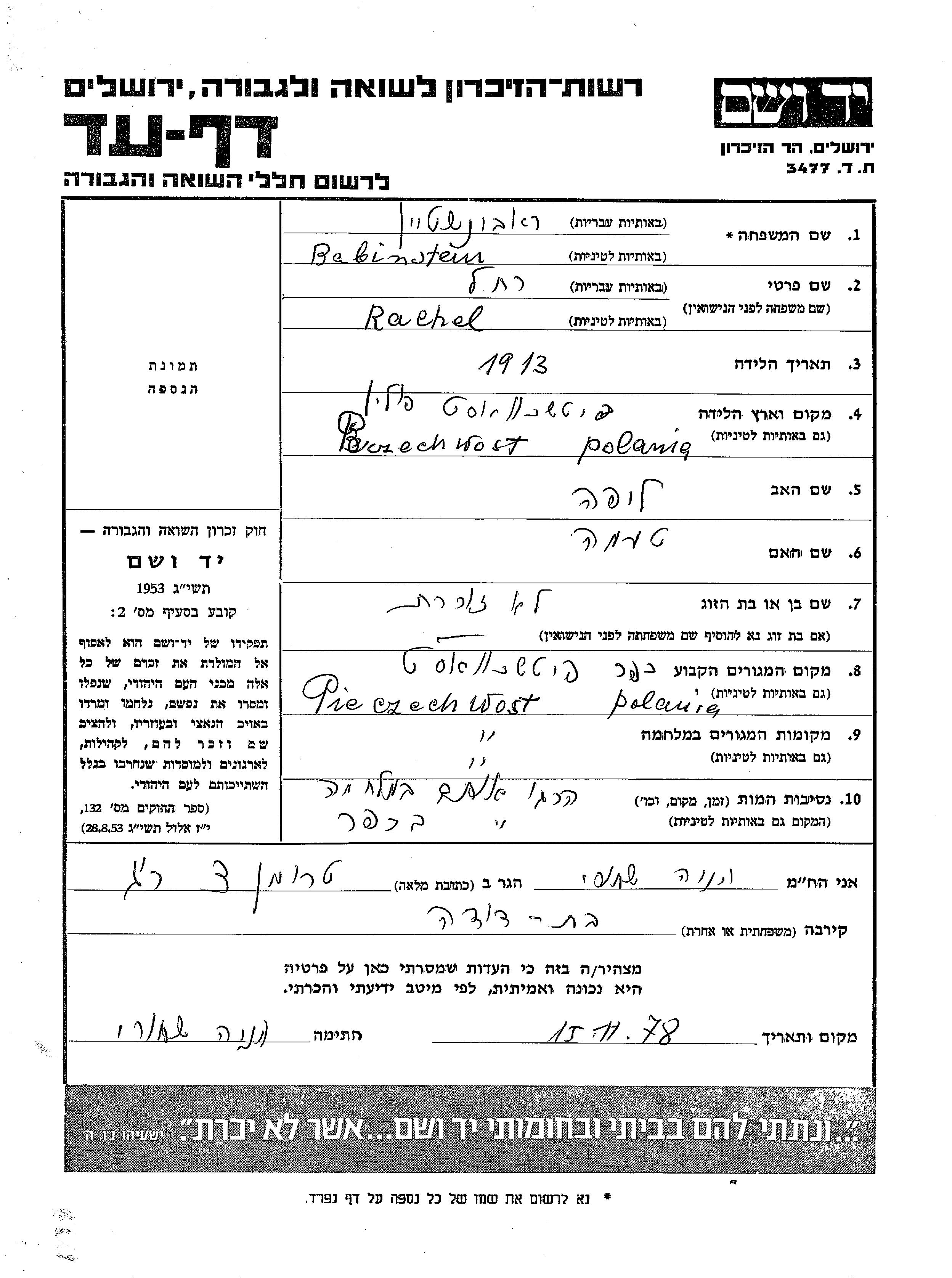 Yad Vashem - Pages of Testimony Names Memorial Collection