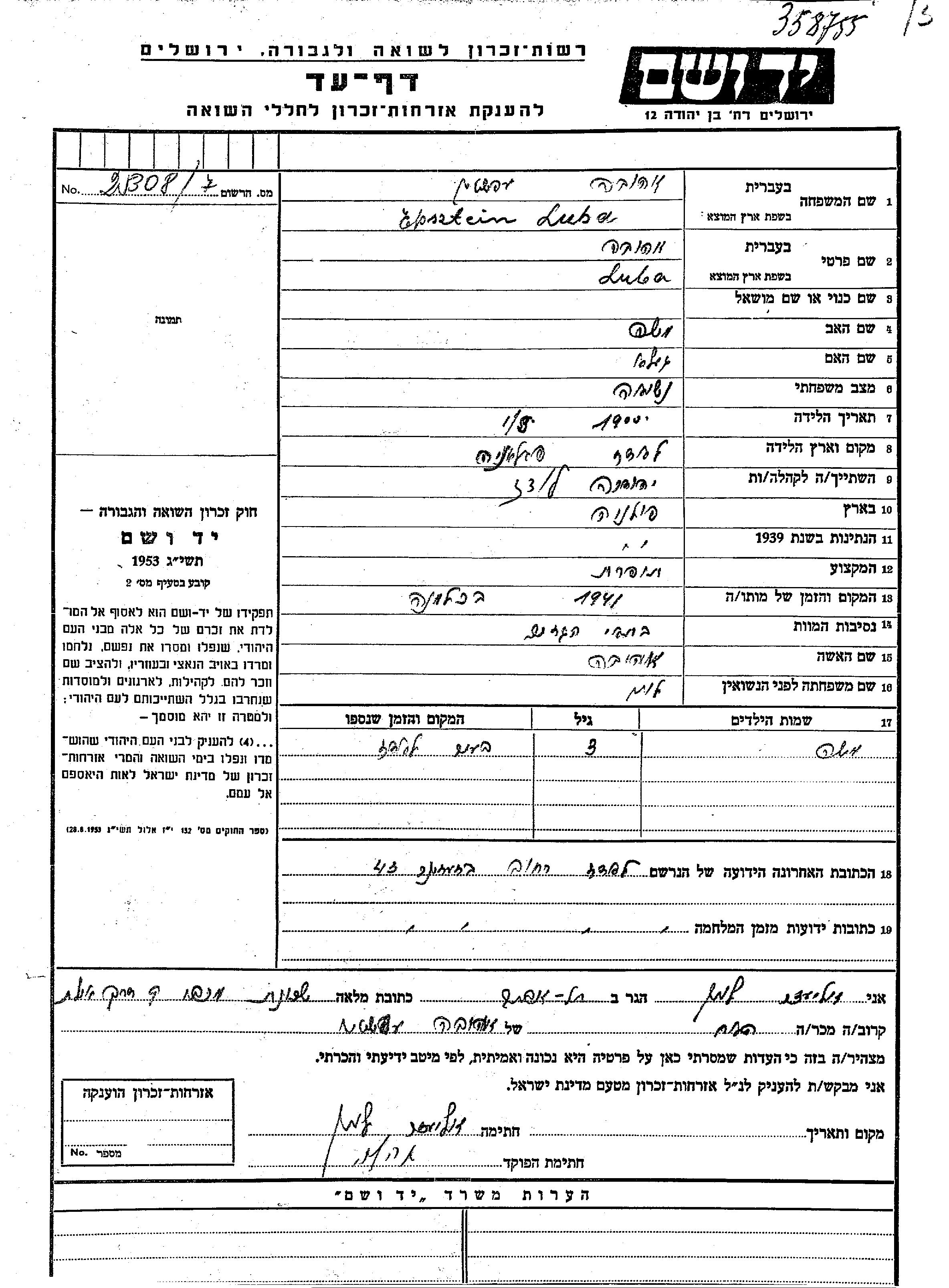 Yad Vashem - Pages of Testimony Names Memorial Collection