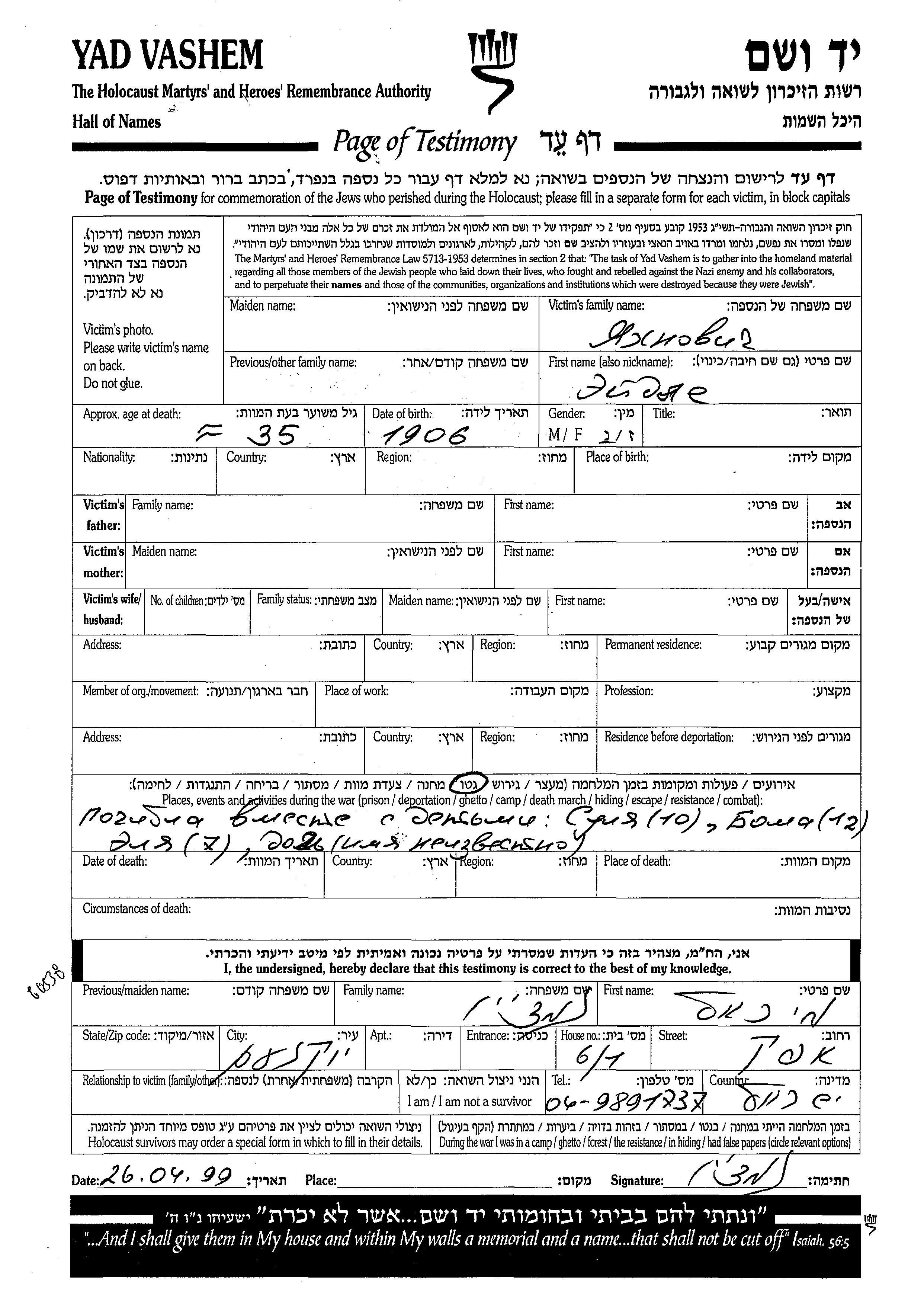 Yad Vashem - Pages of Testimony Names Memorial Collection
