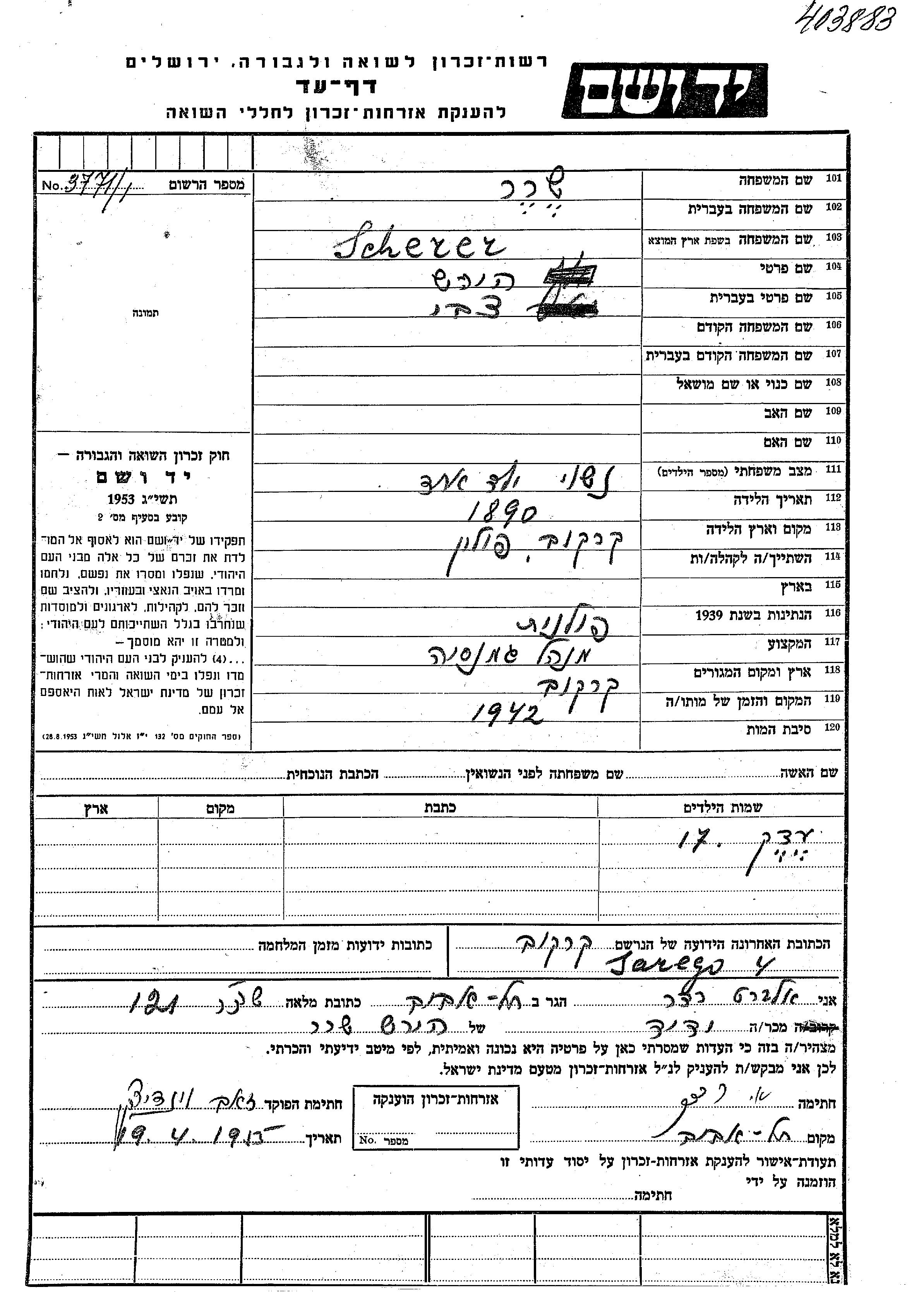Yad Vashem - Pages of Testimony Names Memorial Collection