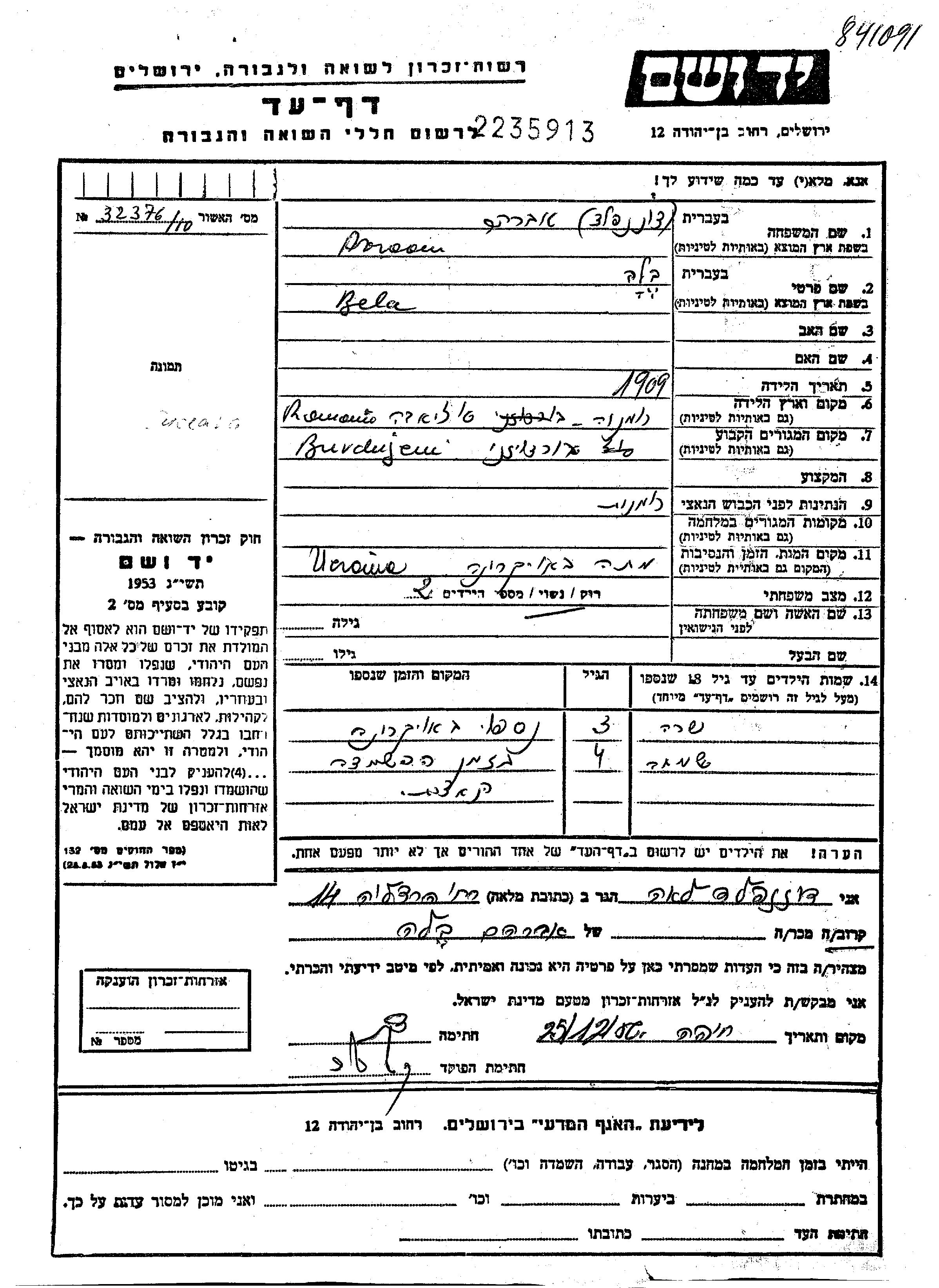 Yad Vashem - Pages of Testimony Names Memorial Collection