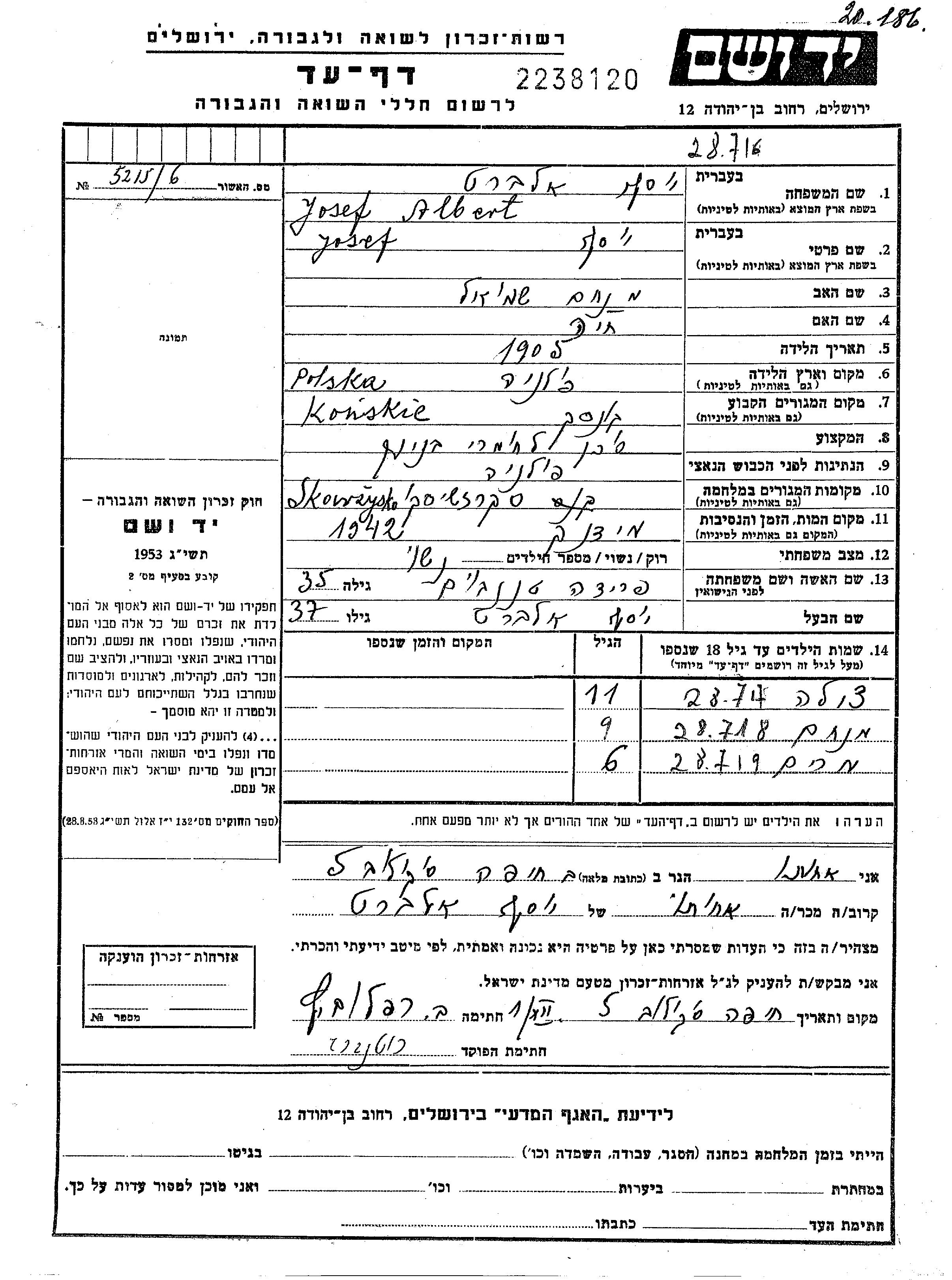 Albert Elbert Miriam Końskie, Pologne Feuille de témoignage