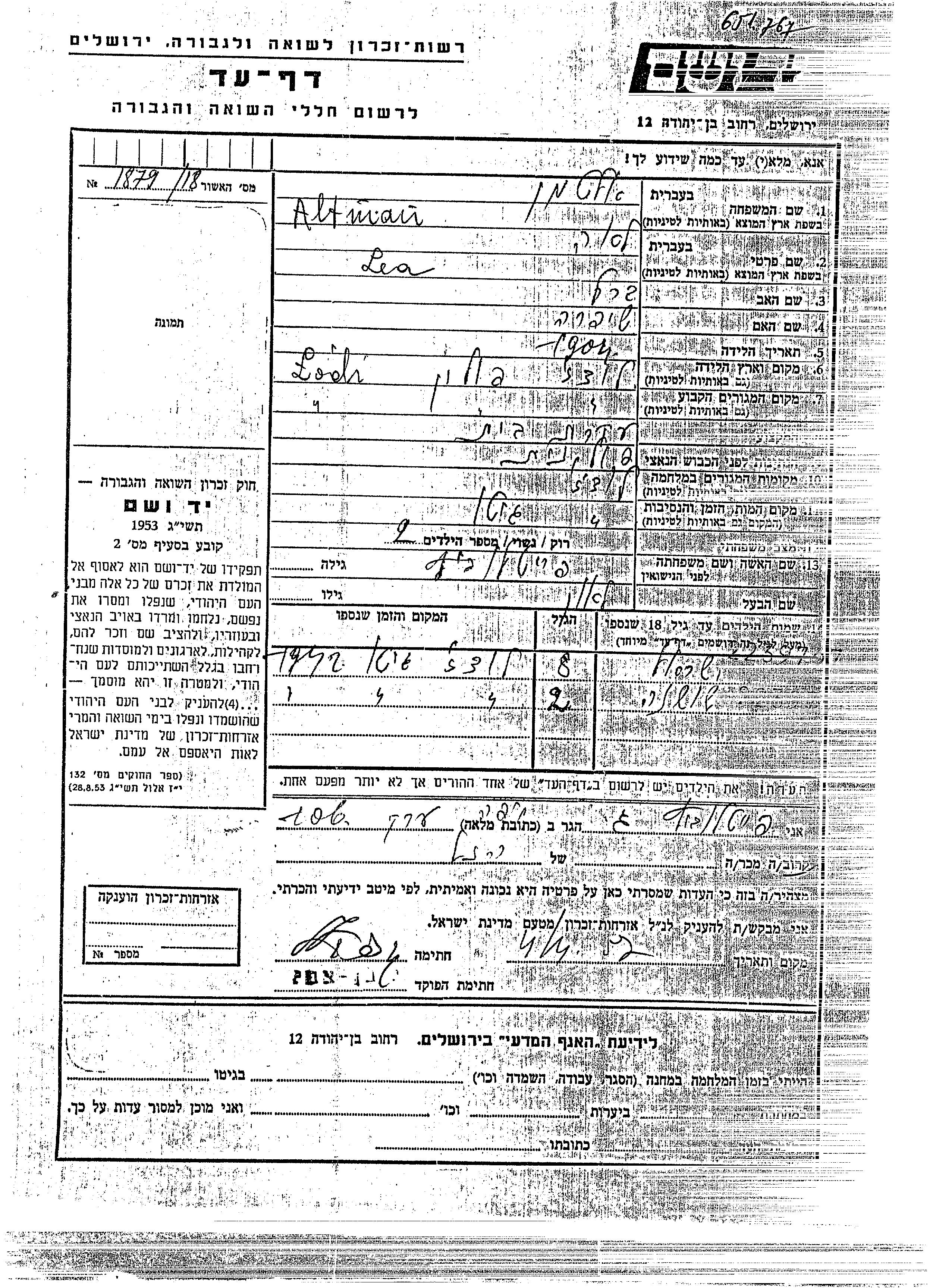 Altman Yisrael Lodz, Pologne Feuille de témoignage