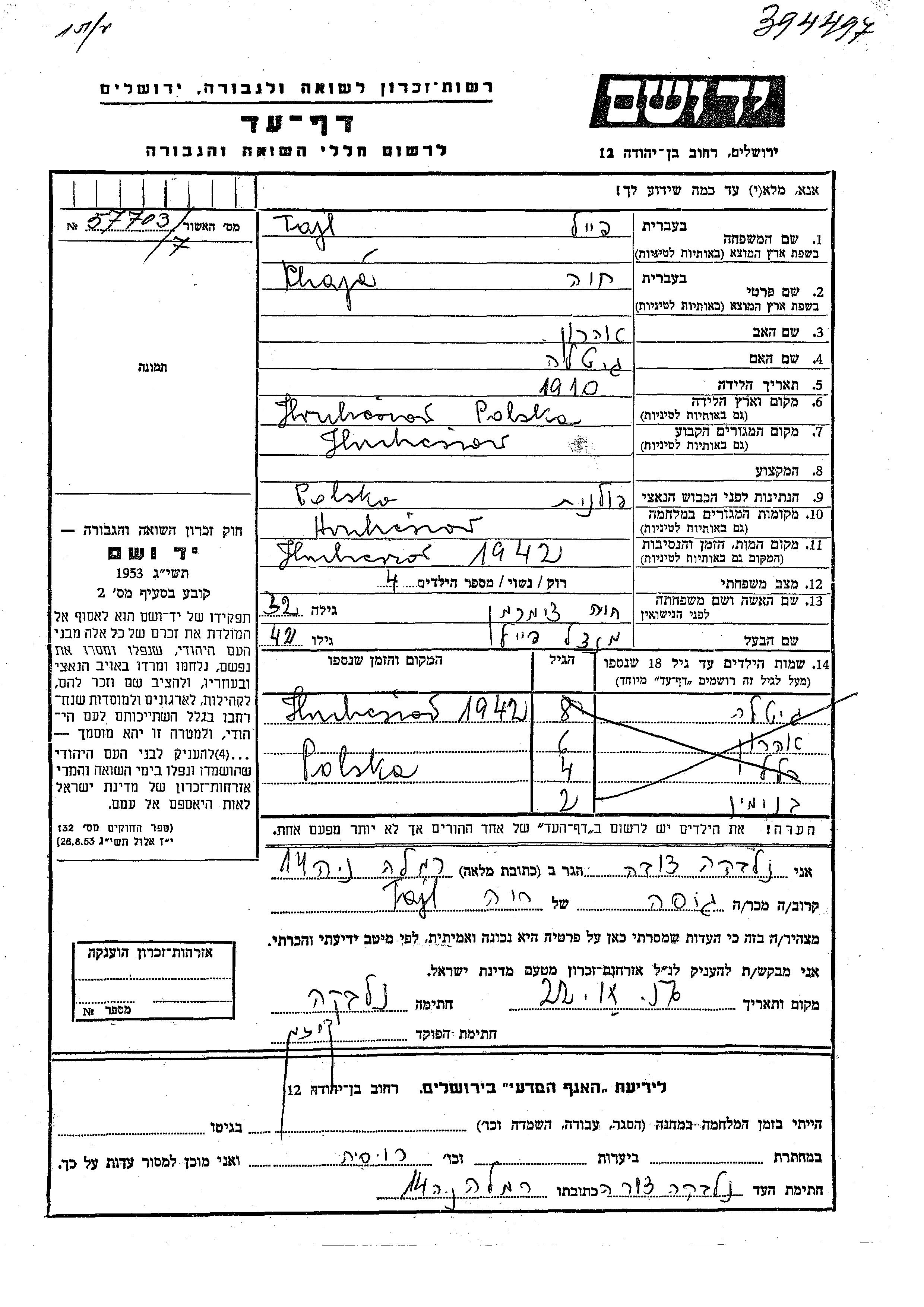 Yad Vashem - Pages of Testimony Names Memorial Collection