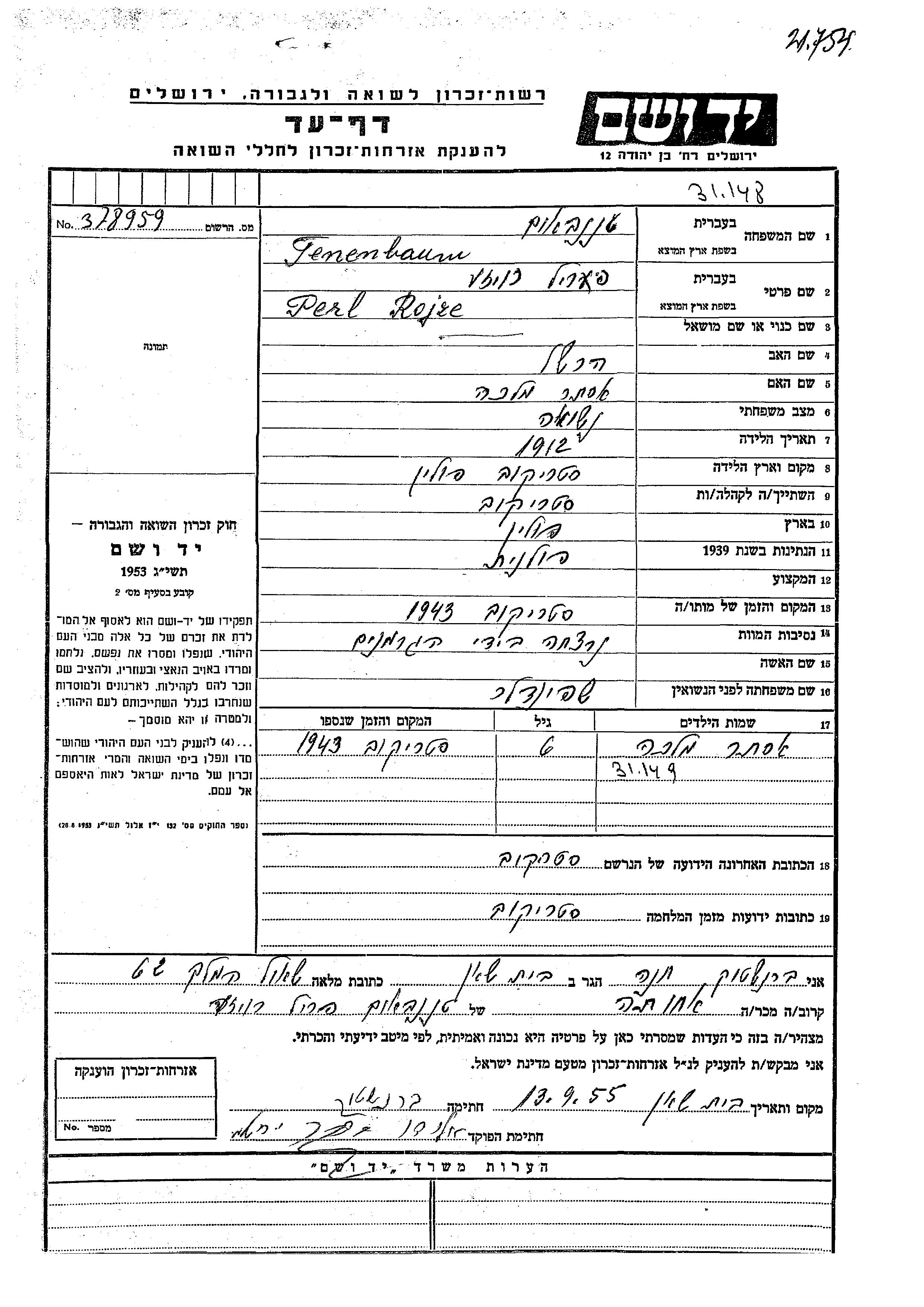 Yad Vashem - Pages of Testimony Names Memorial Collection