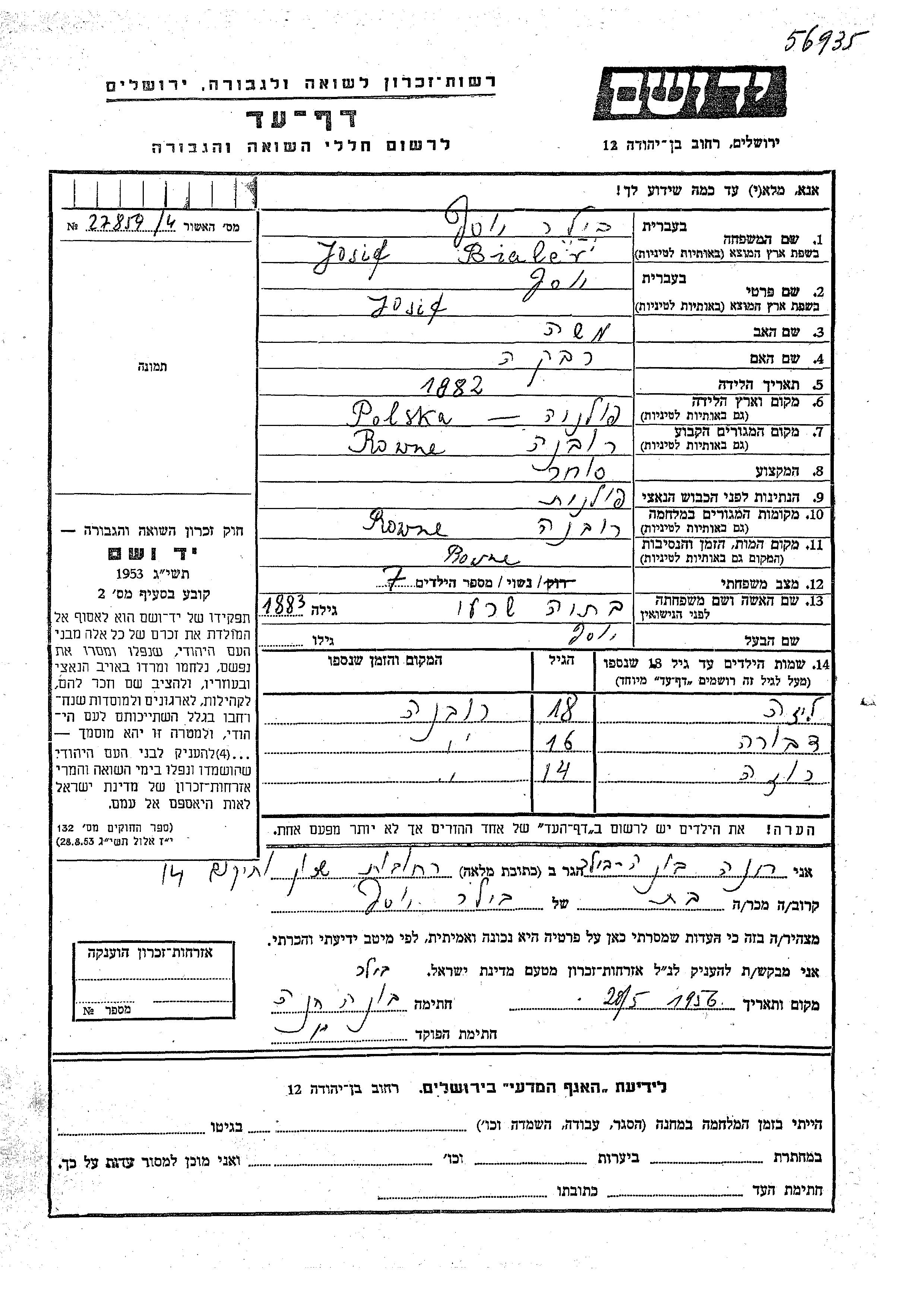 Yad Vashem - Pages of Testimony Names Memorial Collection