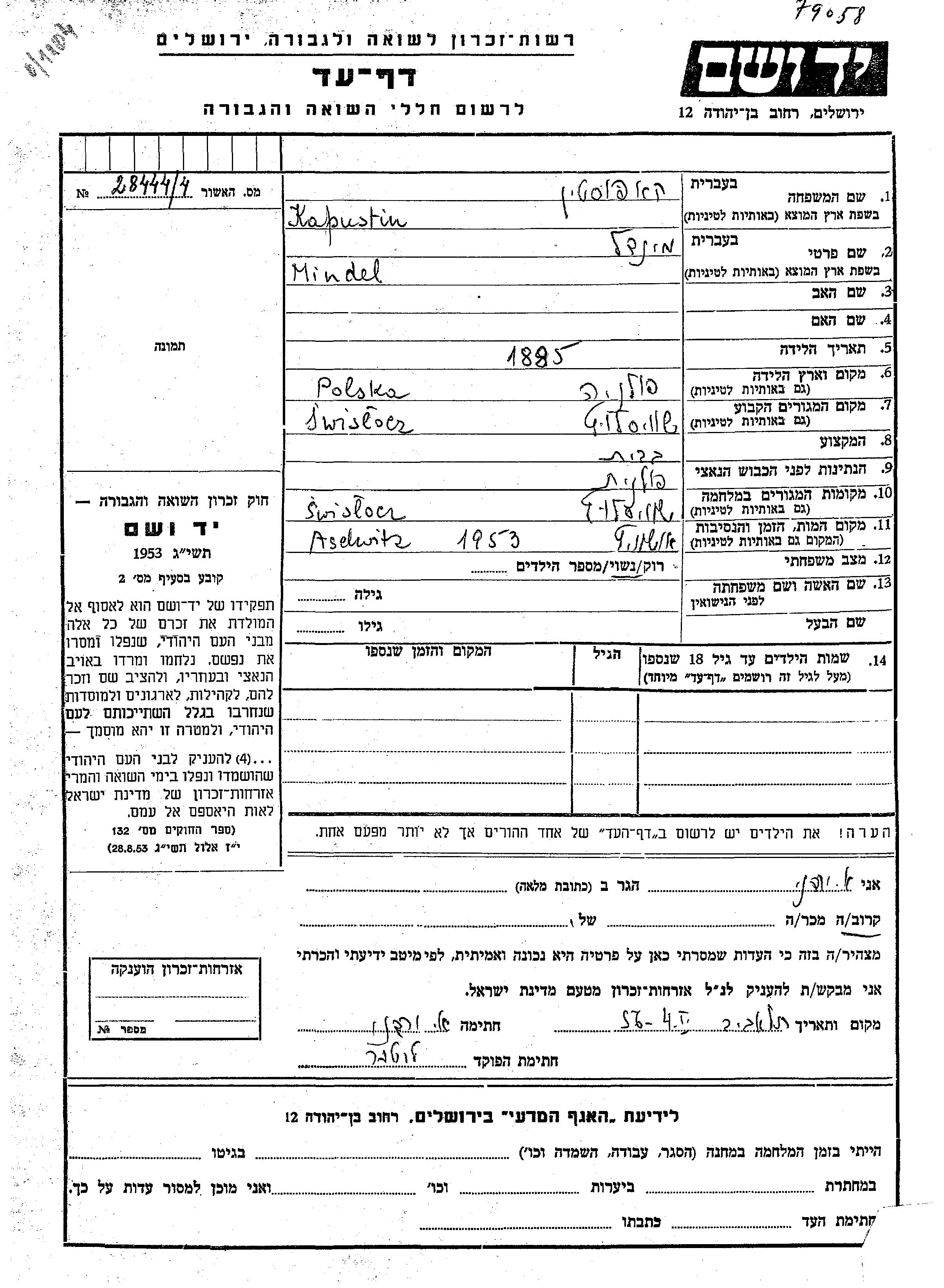 Yad Vashem - Pages of Testimony Names Memorial Collection