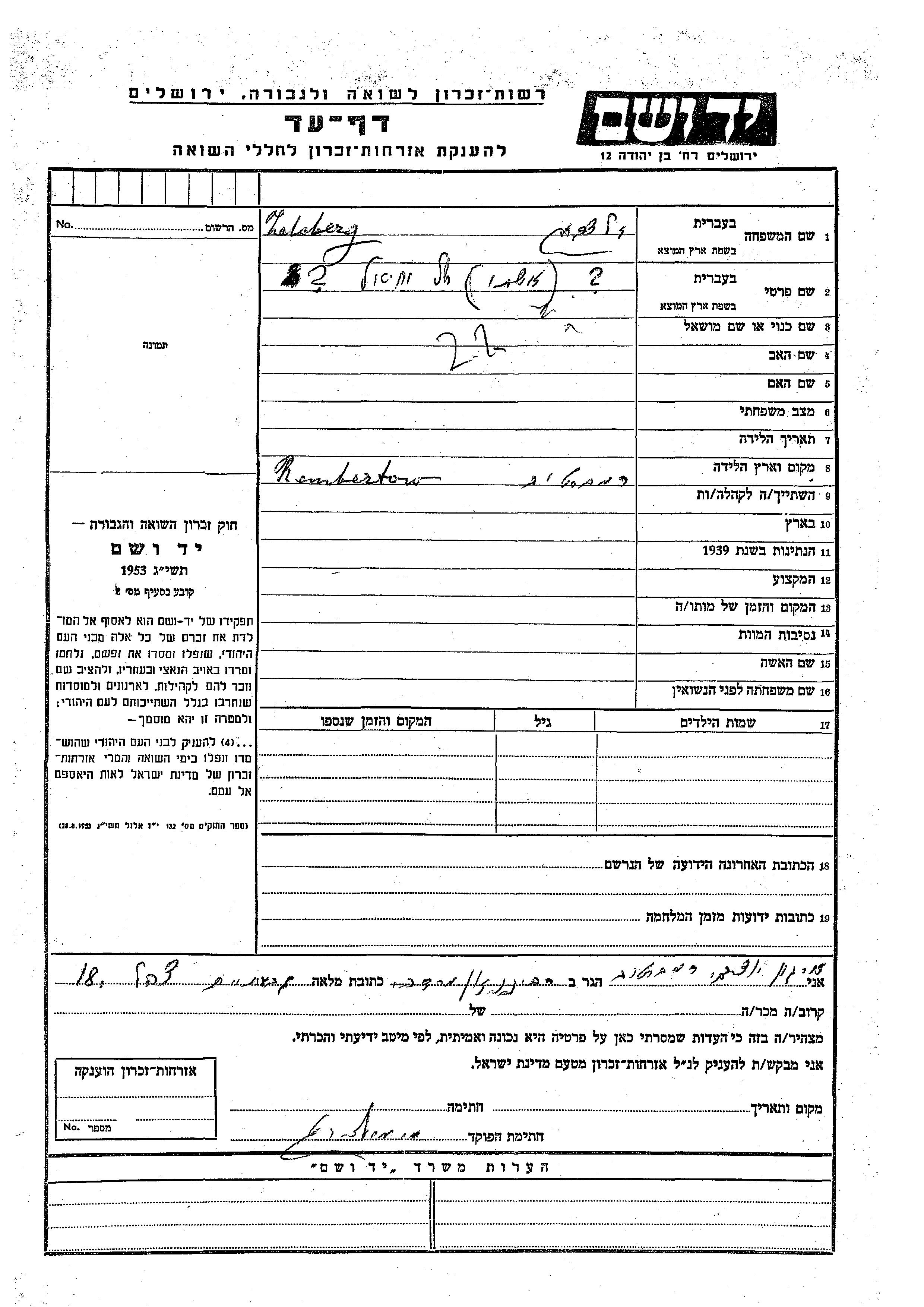 Yad Vashem - Pages of Testimony Names Memorial Collection