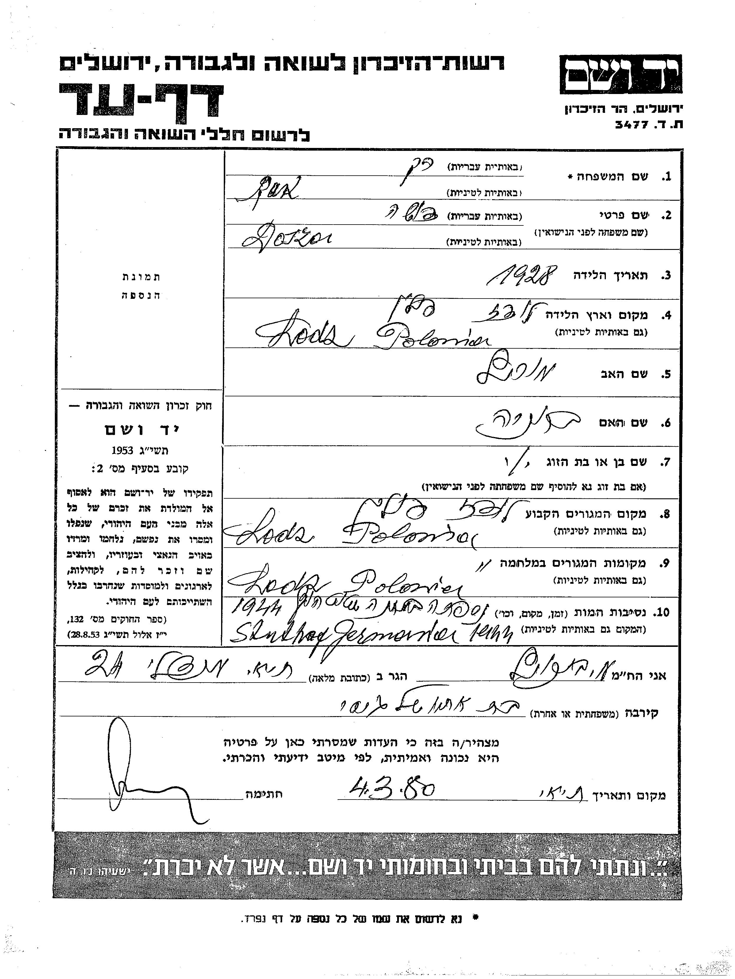Yad Vashem - Pages of Testimony Names Memorial Collection