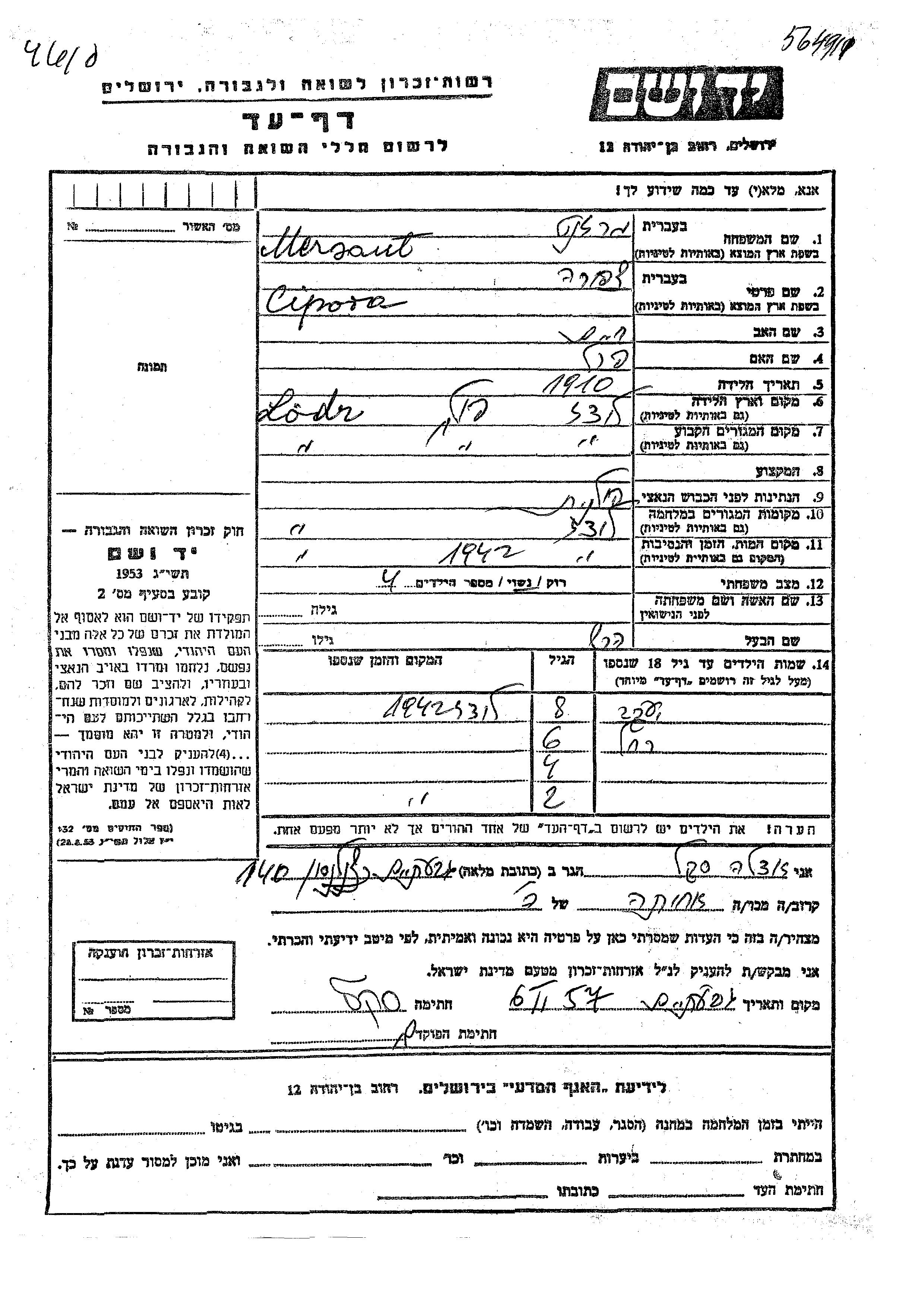 Cipora a été assassinée pendant la Shoah. Lieu de la mort: Lodz, Pologne en 1942.