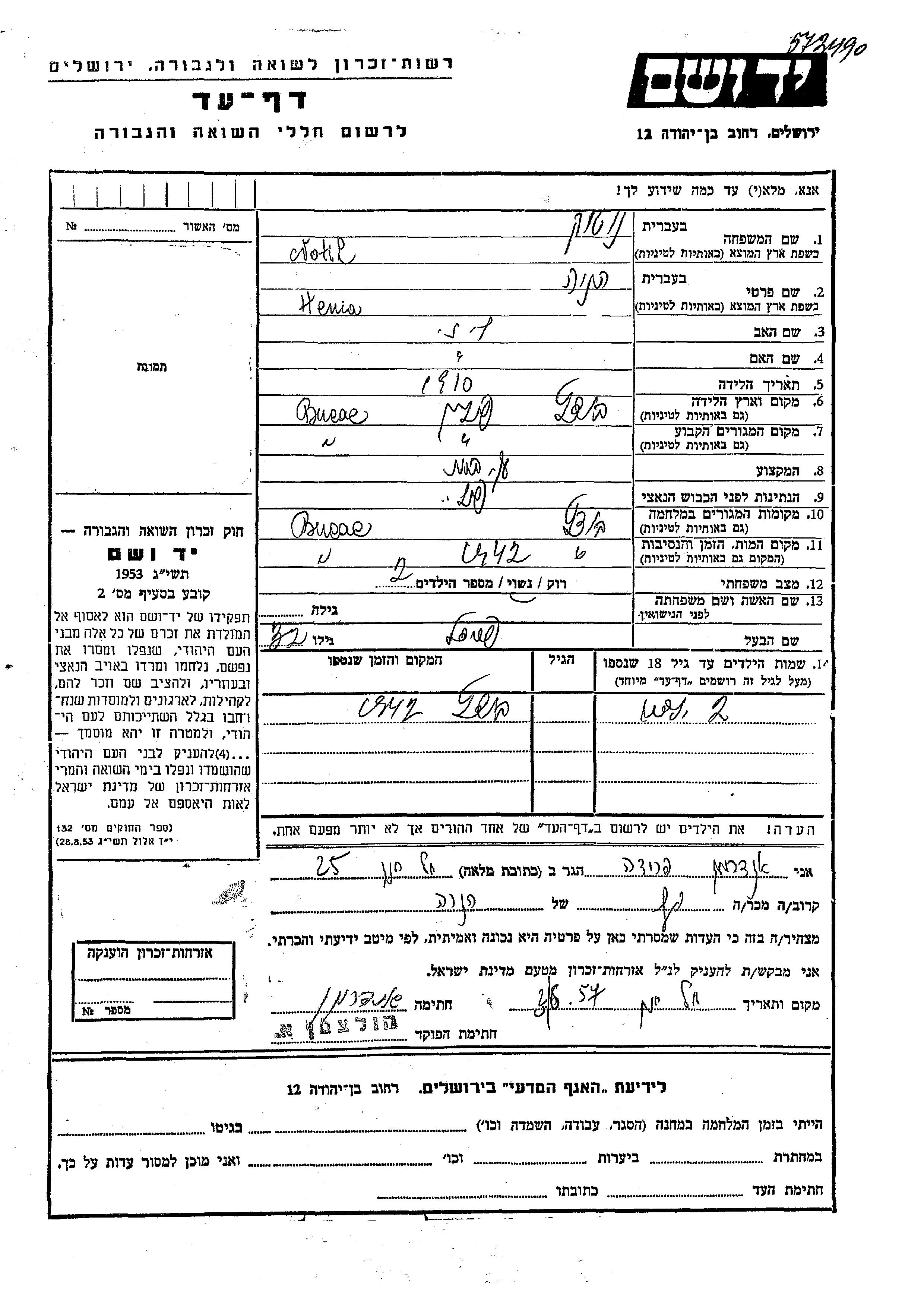 Yad Vashem - Pages of Testimony Names Memorial Collection