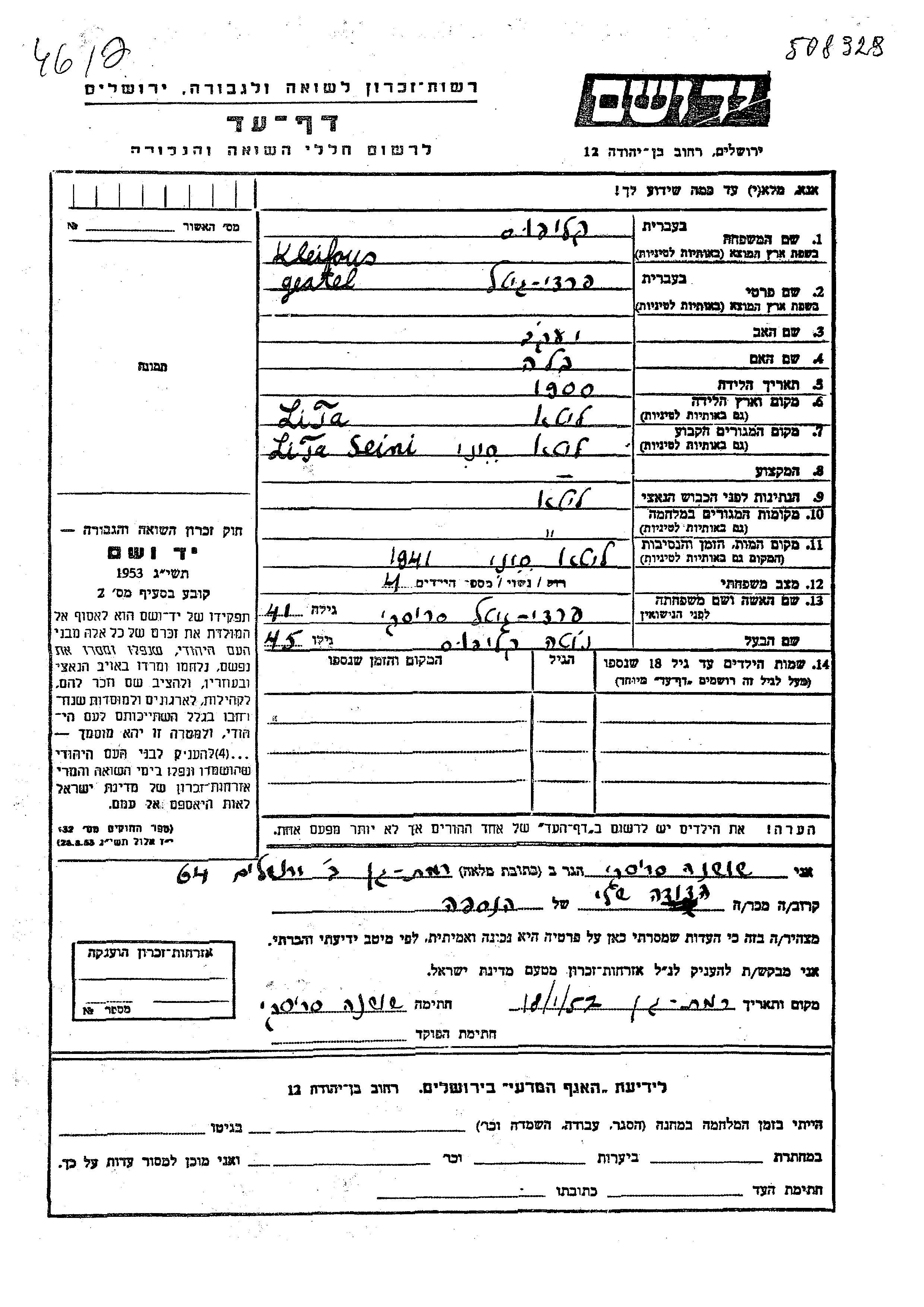 Yad Vashem - Pages of Testimony Names Memorial Collection