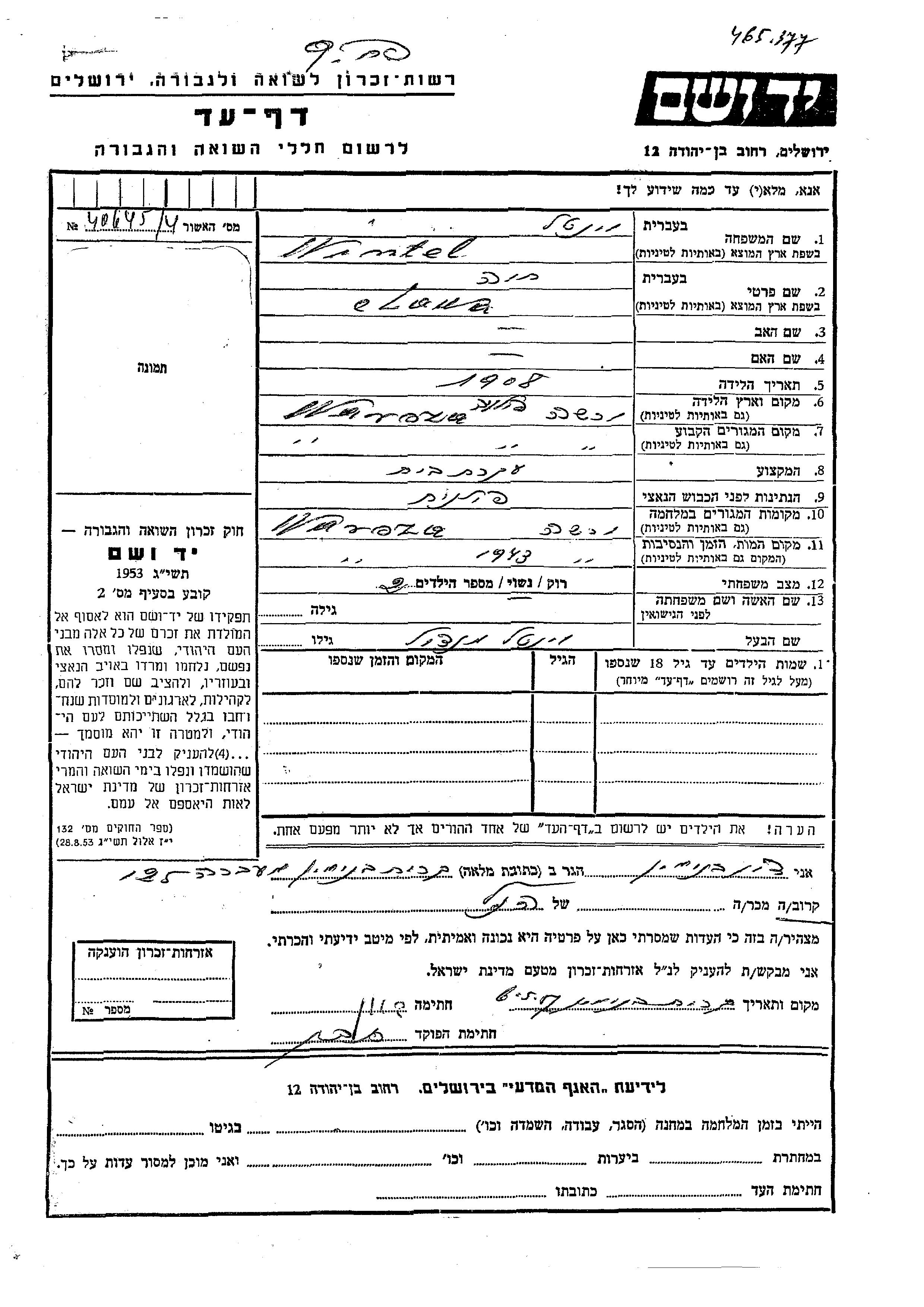 Yad Vashem - Pages of Testimony Names Memorial Collection