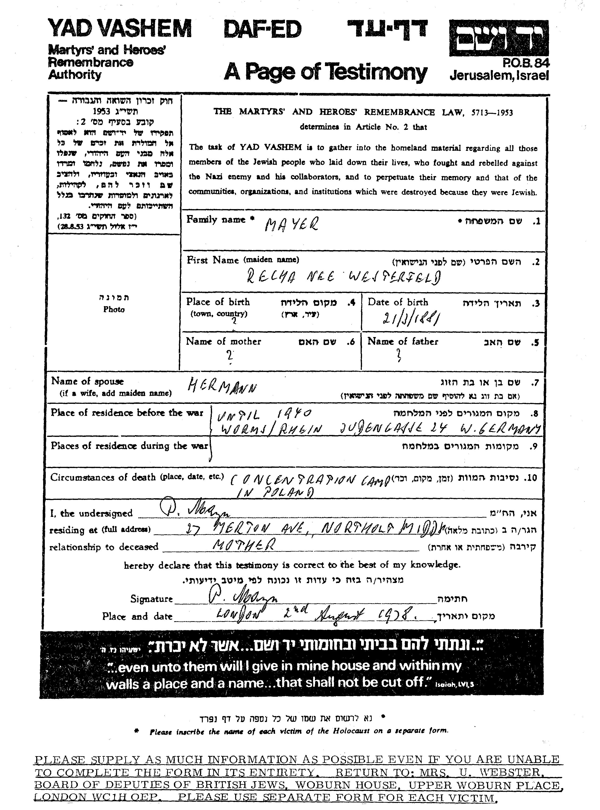 Yad Vashem - Pages of Testimony Names Memorial Collection