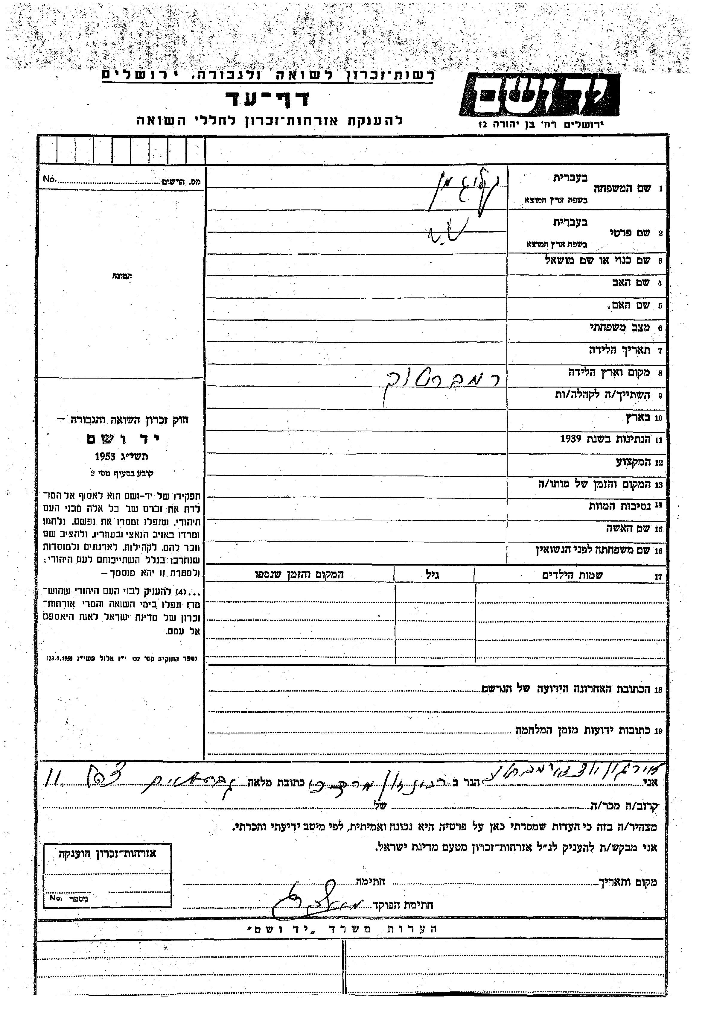 Yad Vashem - Pages of Testimony Names Memorial Collection