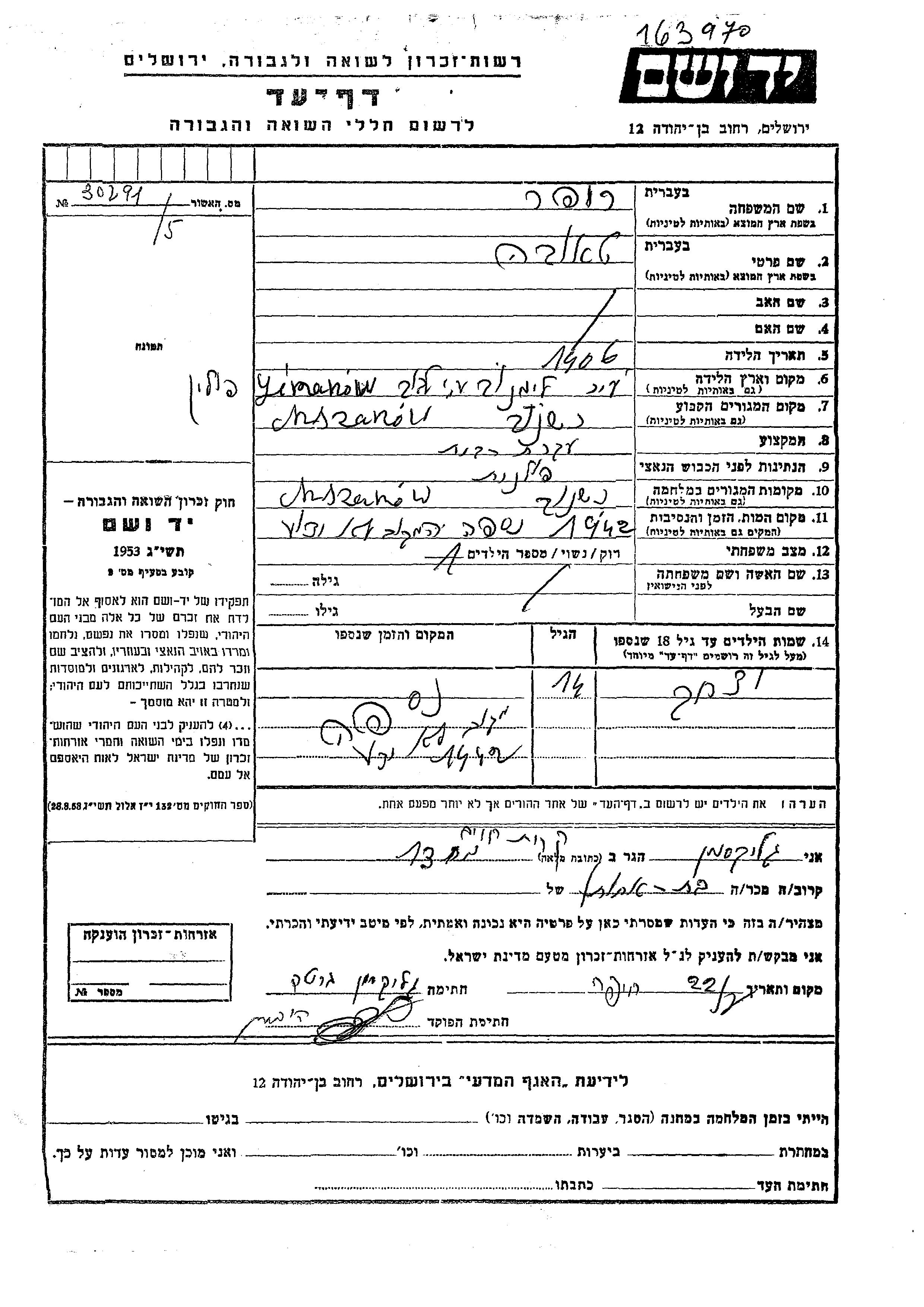 Yad Vashem - Pages of Testimony Names Memorial Collection