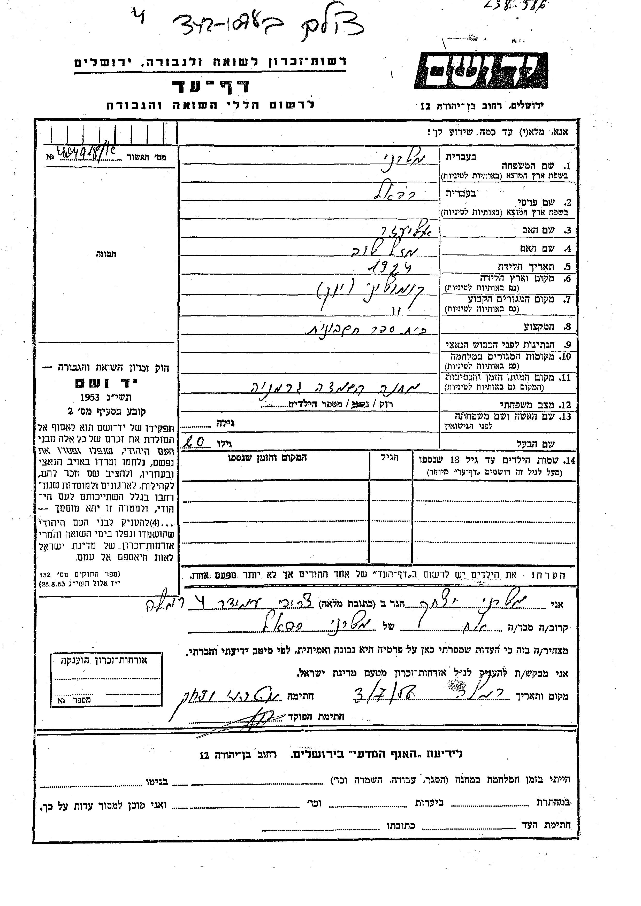 Yad Vashem - Pages of Testimony Names Memorial Collection