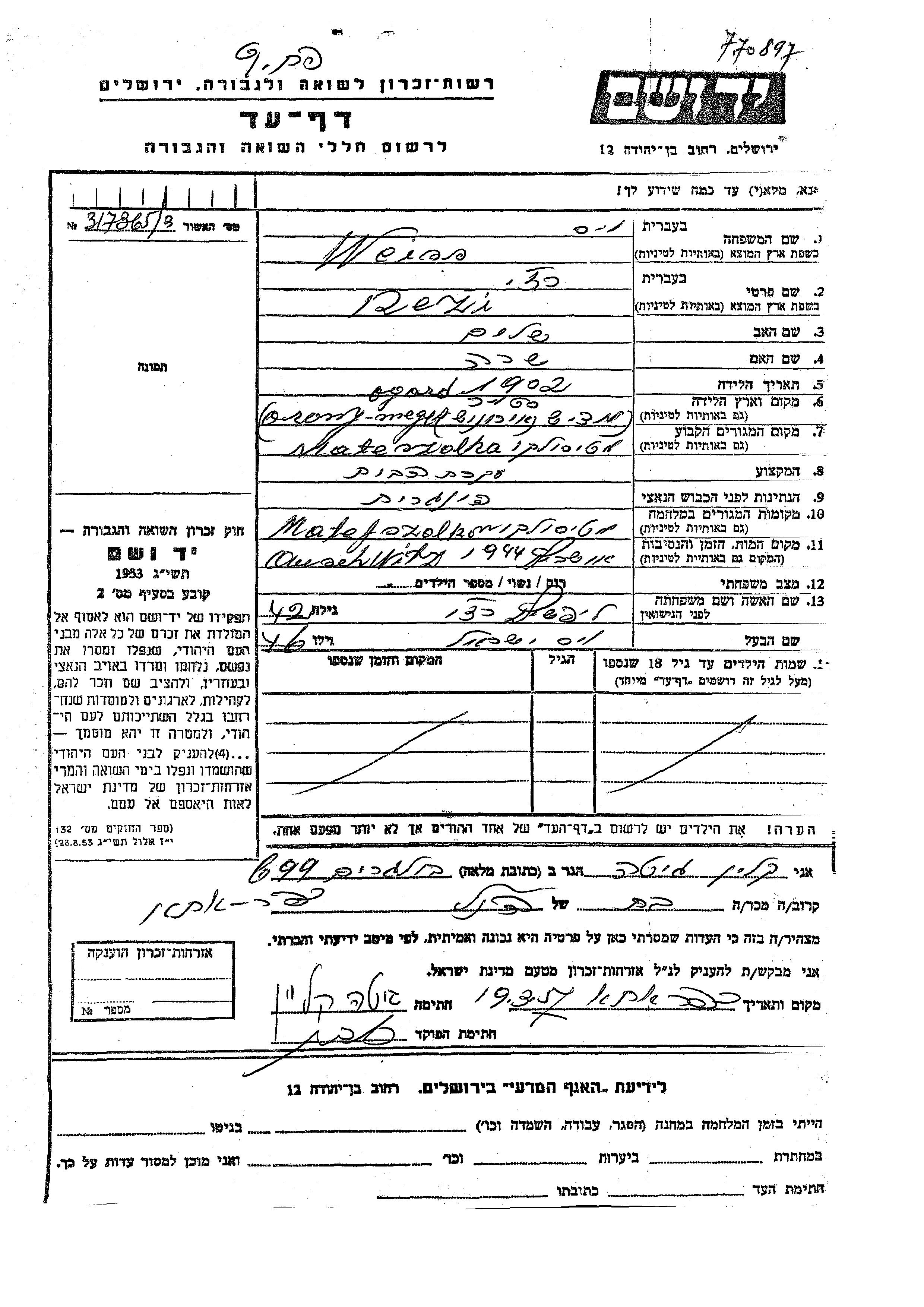 Yad Vashem - Pages of Testimony Names Memorial Collection