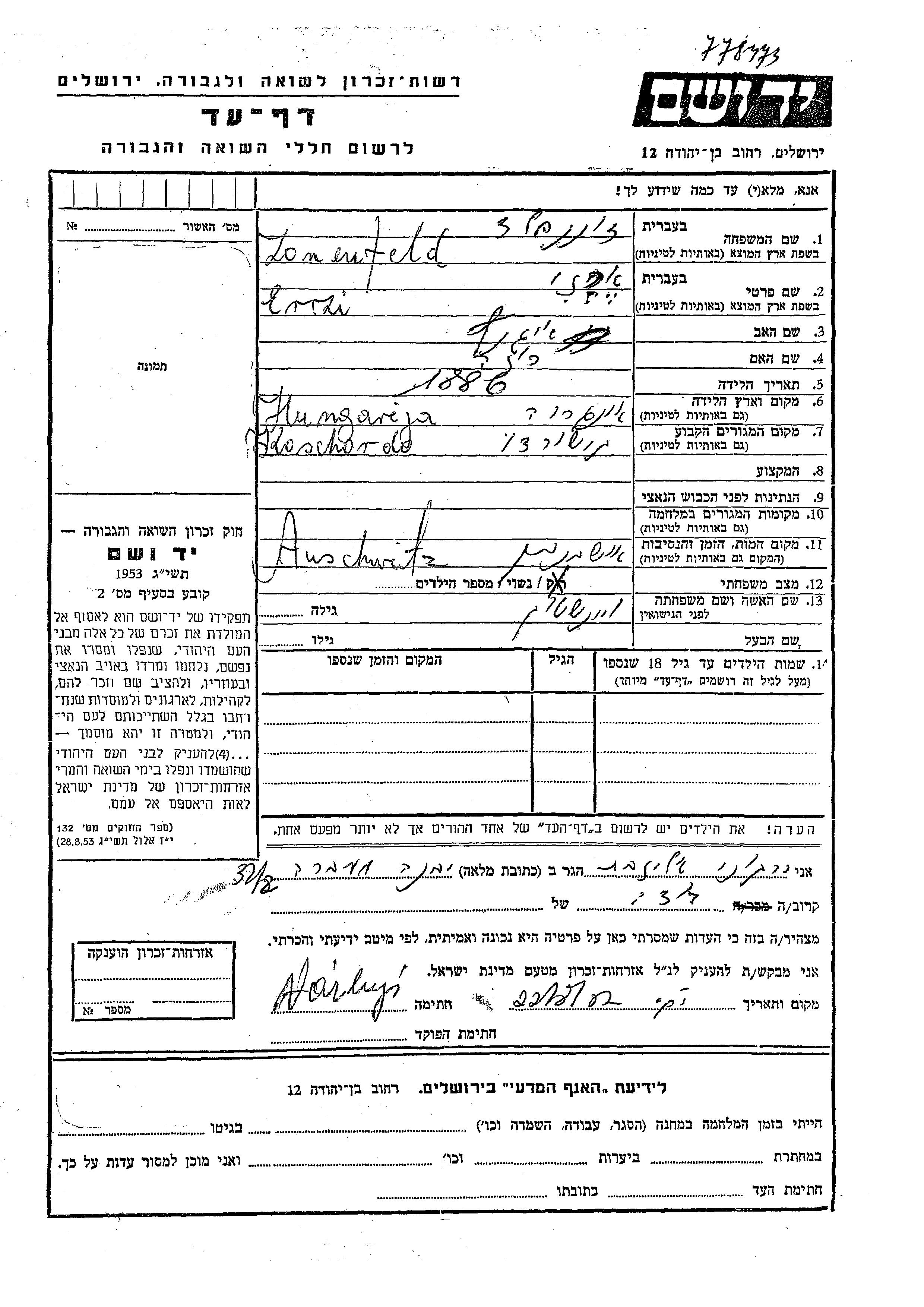 Yad Vashem - Pages of Testimony Names Memorial Collection