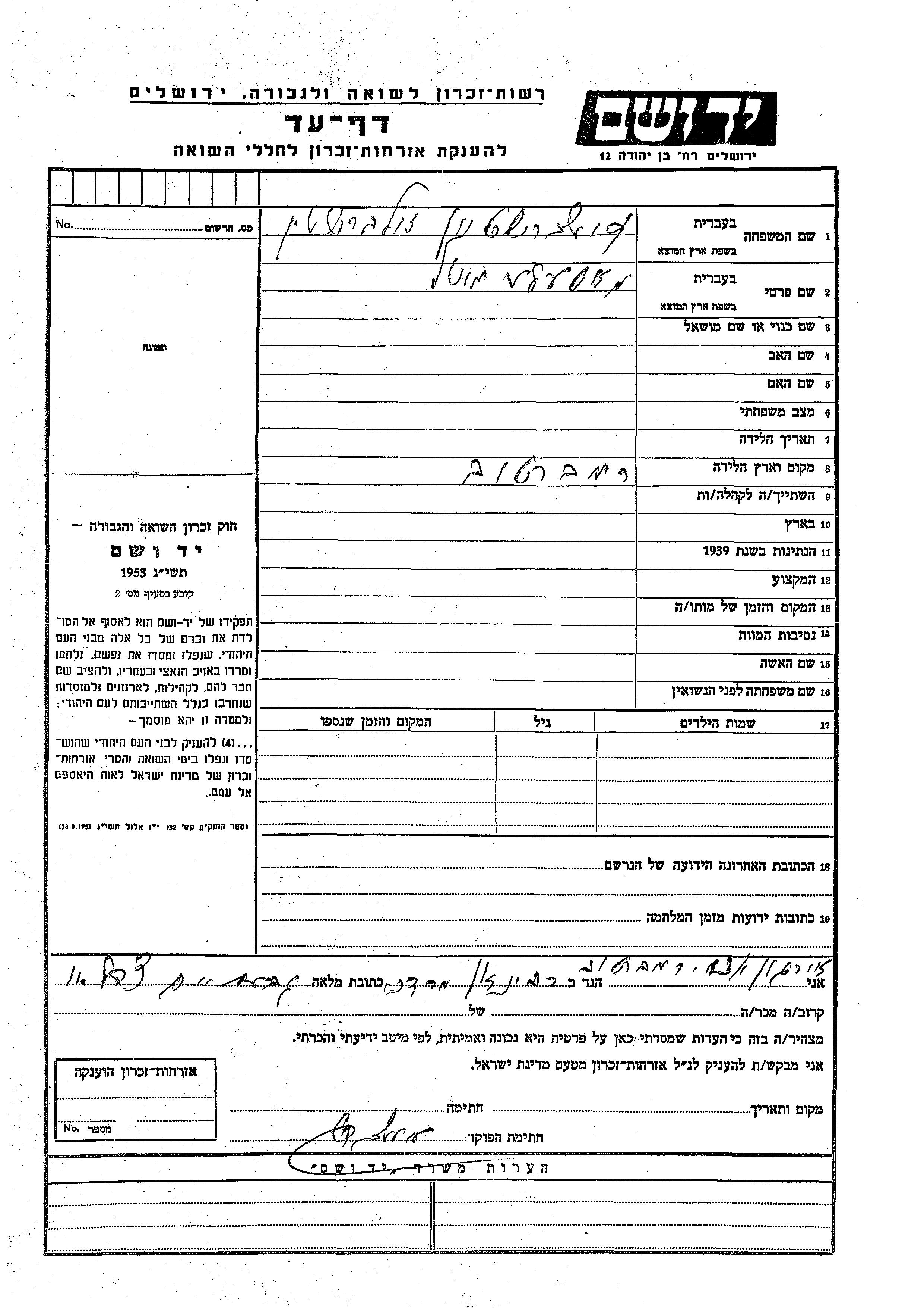 Yad Vashem - Pages of Testimony Names Memorial Collection