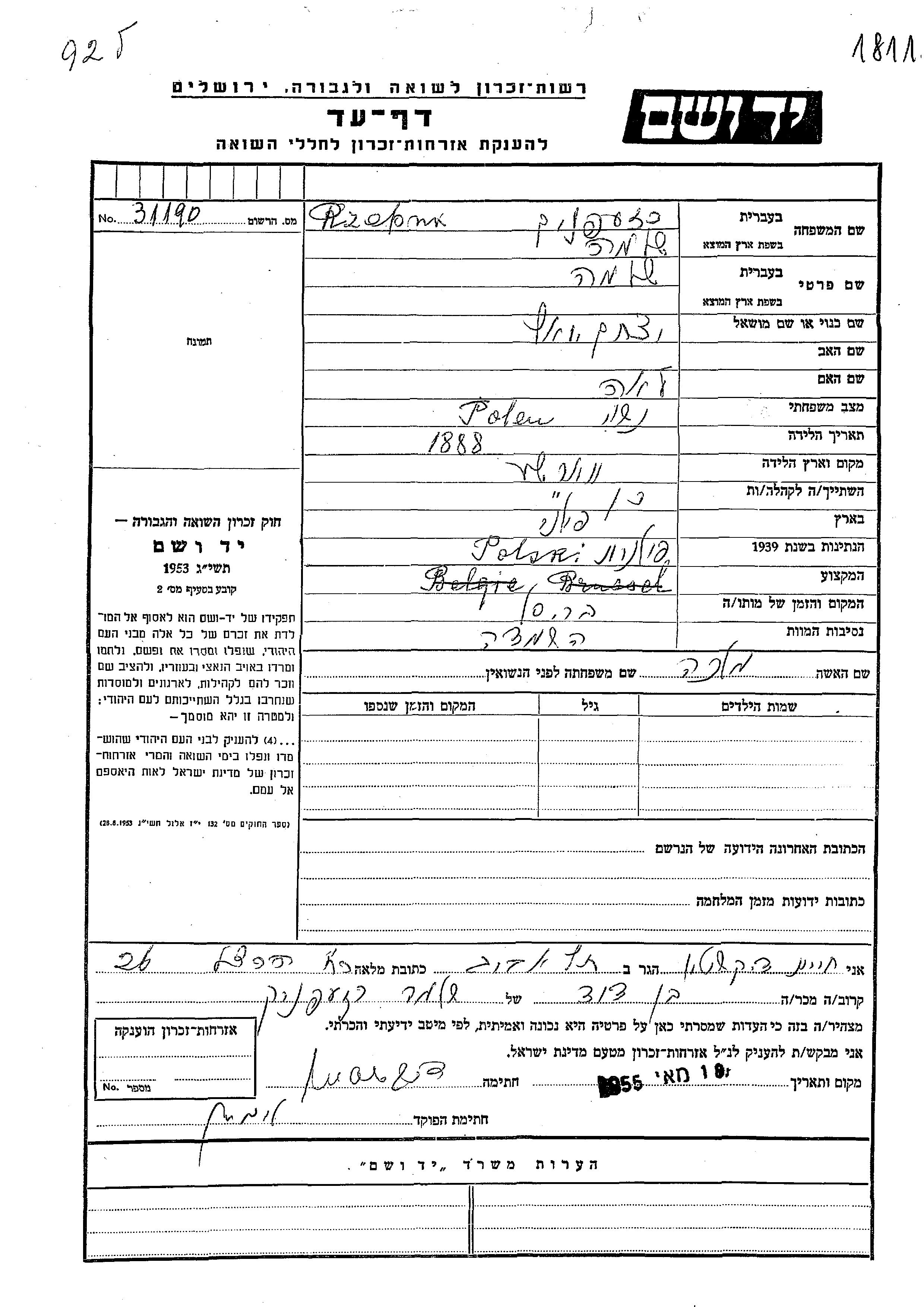 Yad Vashem - Pages of Testimony Names Memorial Collection