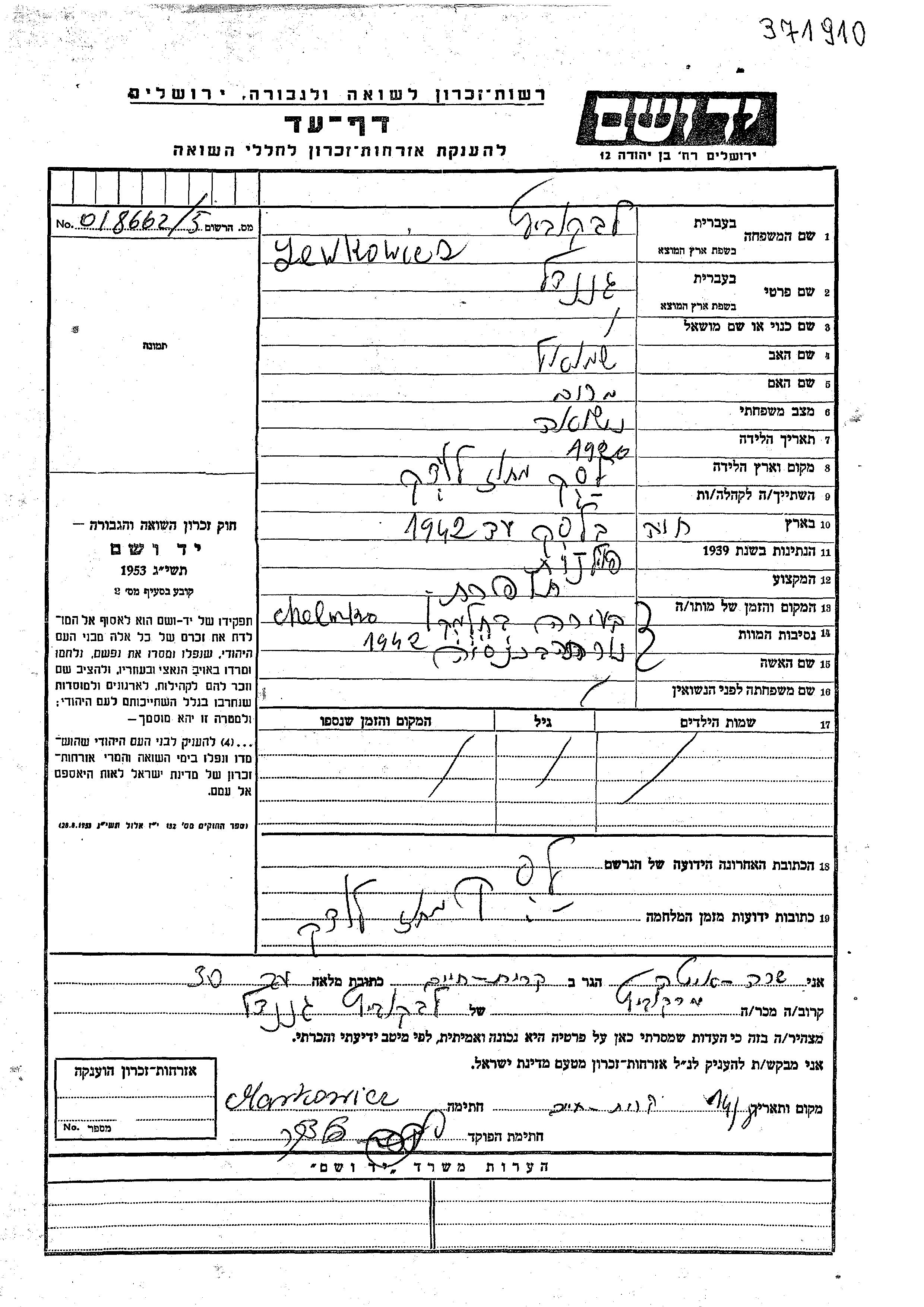 Yad Vashem - Pages of Testimony Names Memorial Collection