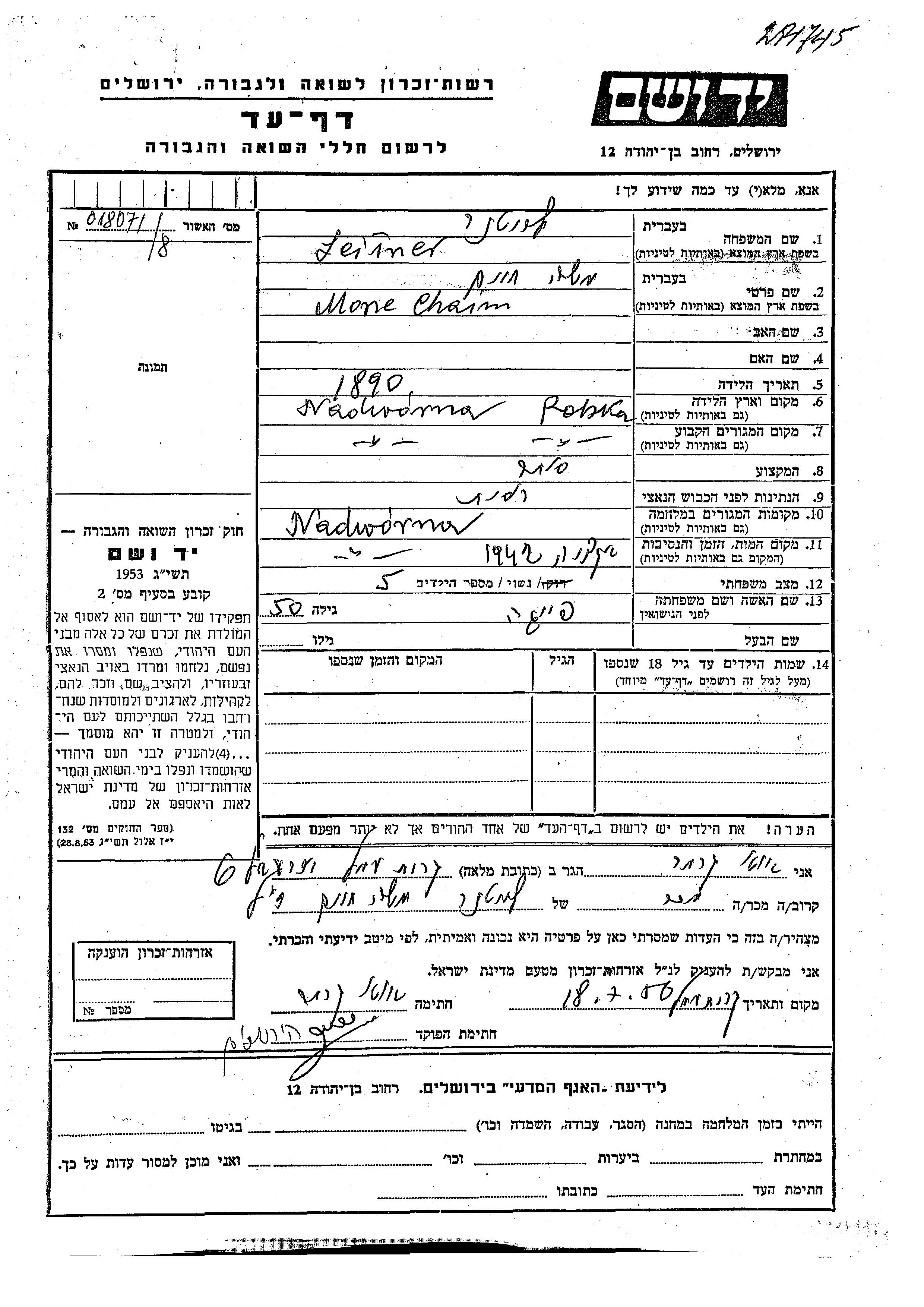 Yad Vashem - Pages of Testimony Names Memorial Collection