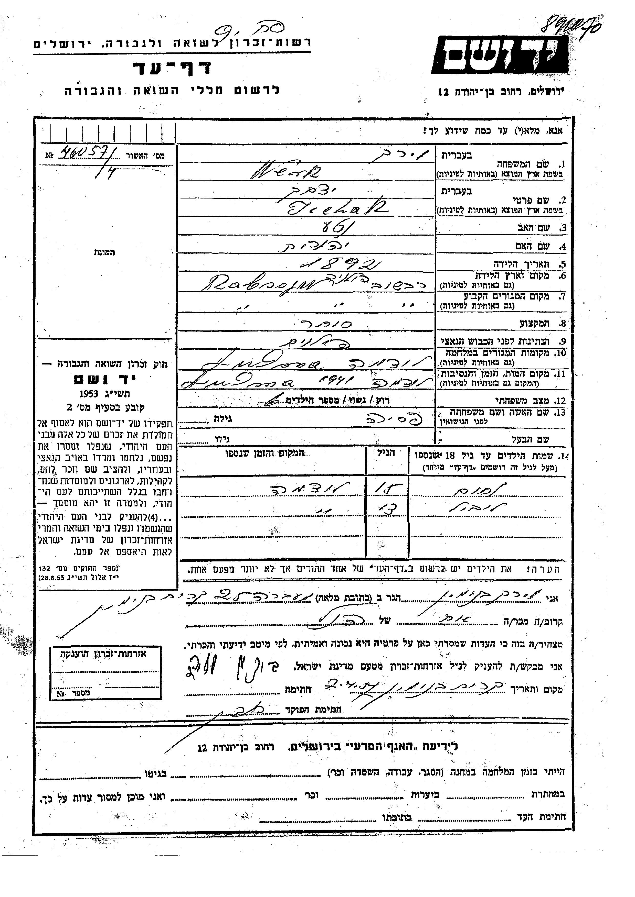 Yad Vashem - Pages of Testimony Names Memorial Collection
