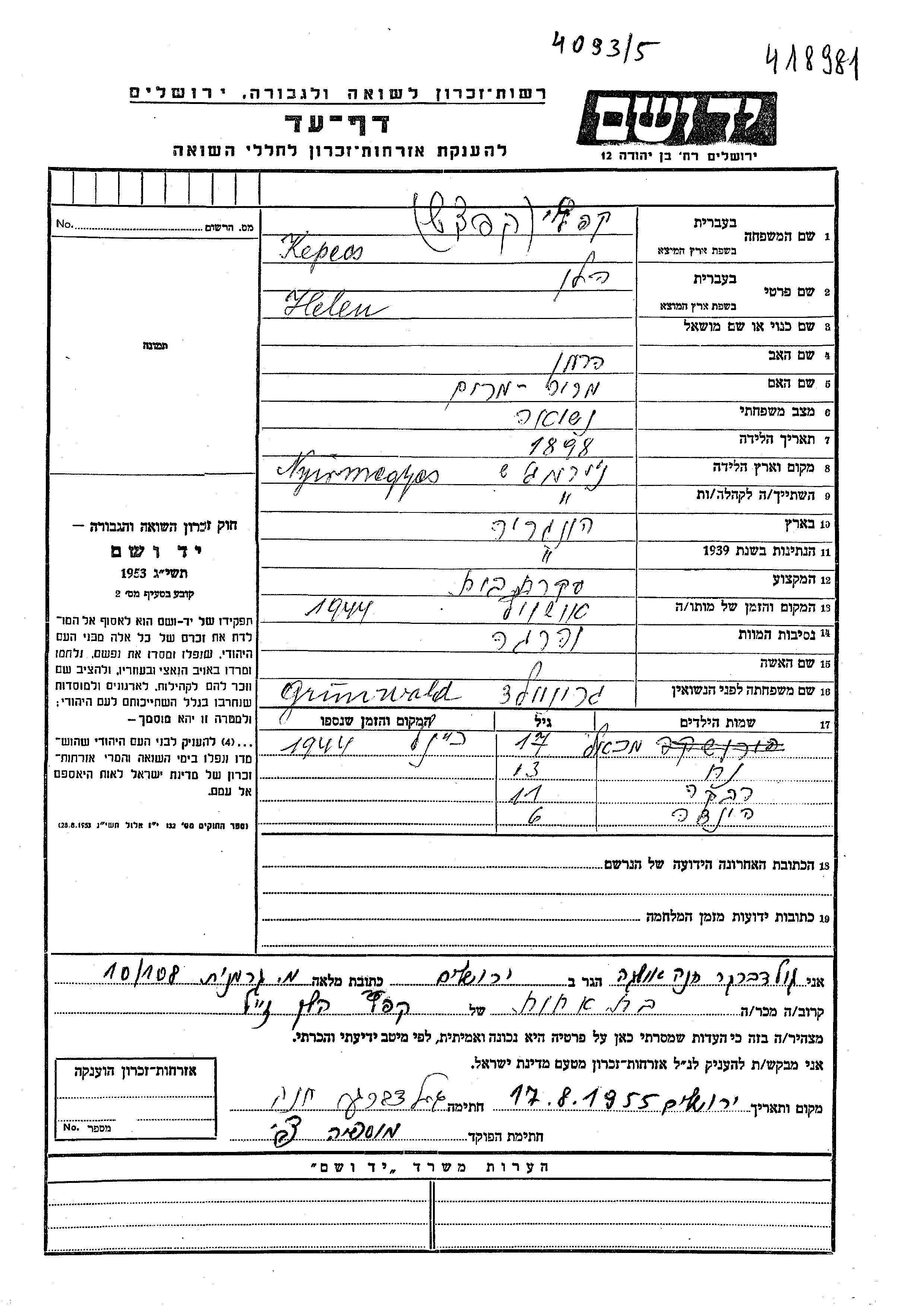 Yad Vashem - Pages of Testimony Names Memorial Collection