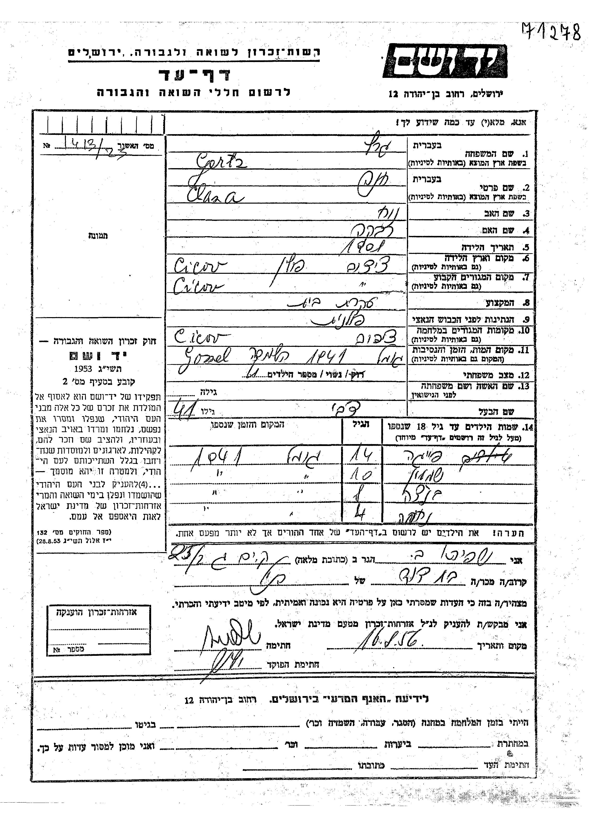 Gertz Benca Cicov, Pologne Feuille de témoignage