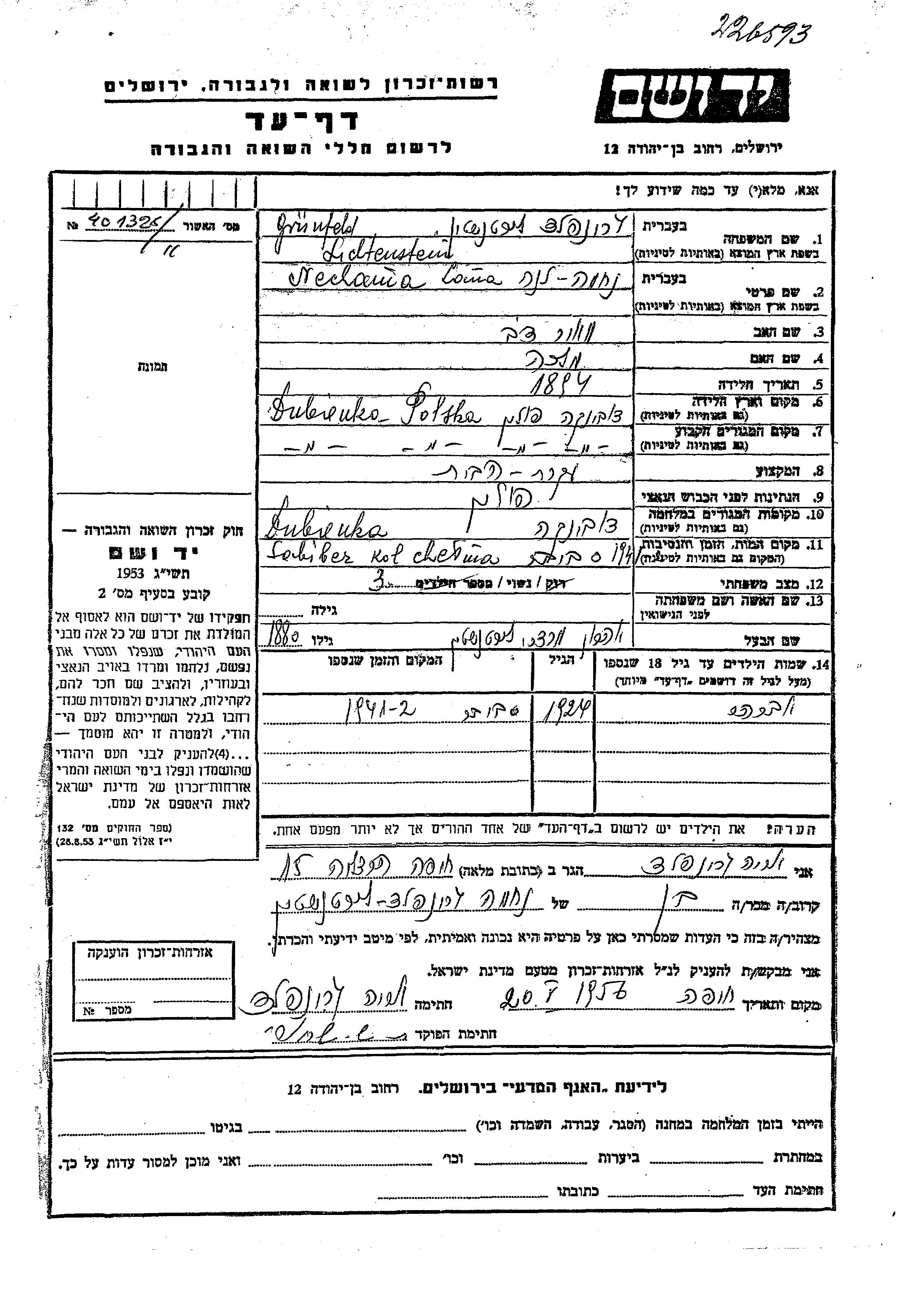Lichtensten Avraham 1924 Dubianka, Pologne Feuille de témoignage