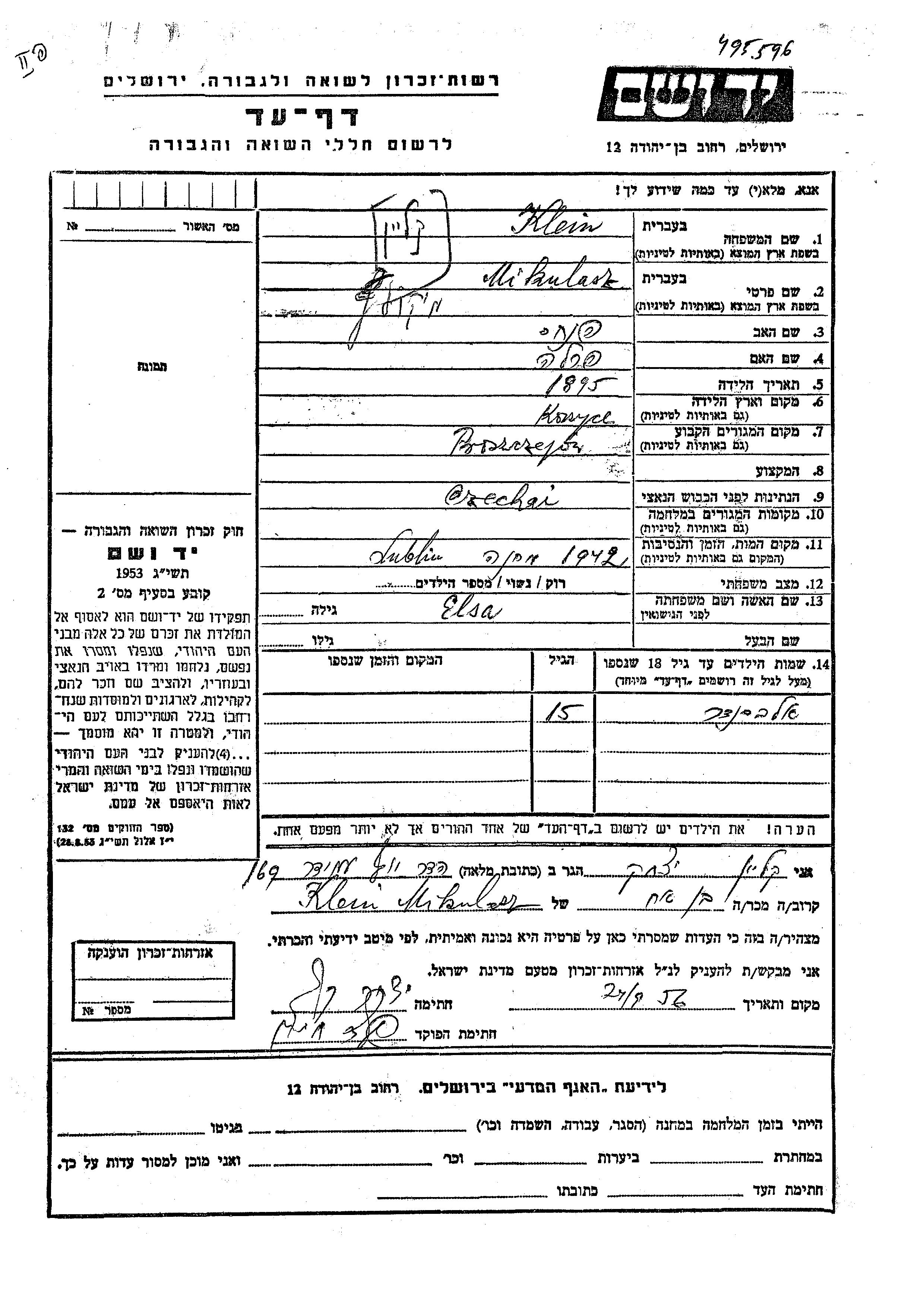 Klein Aleksander endroit inconnu, Feuille de témoignage