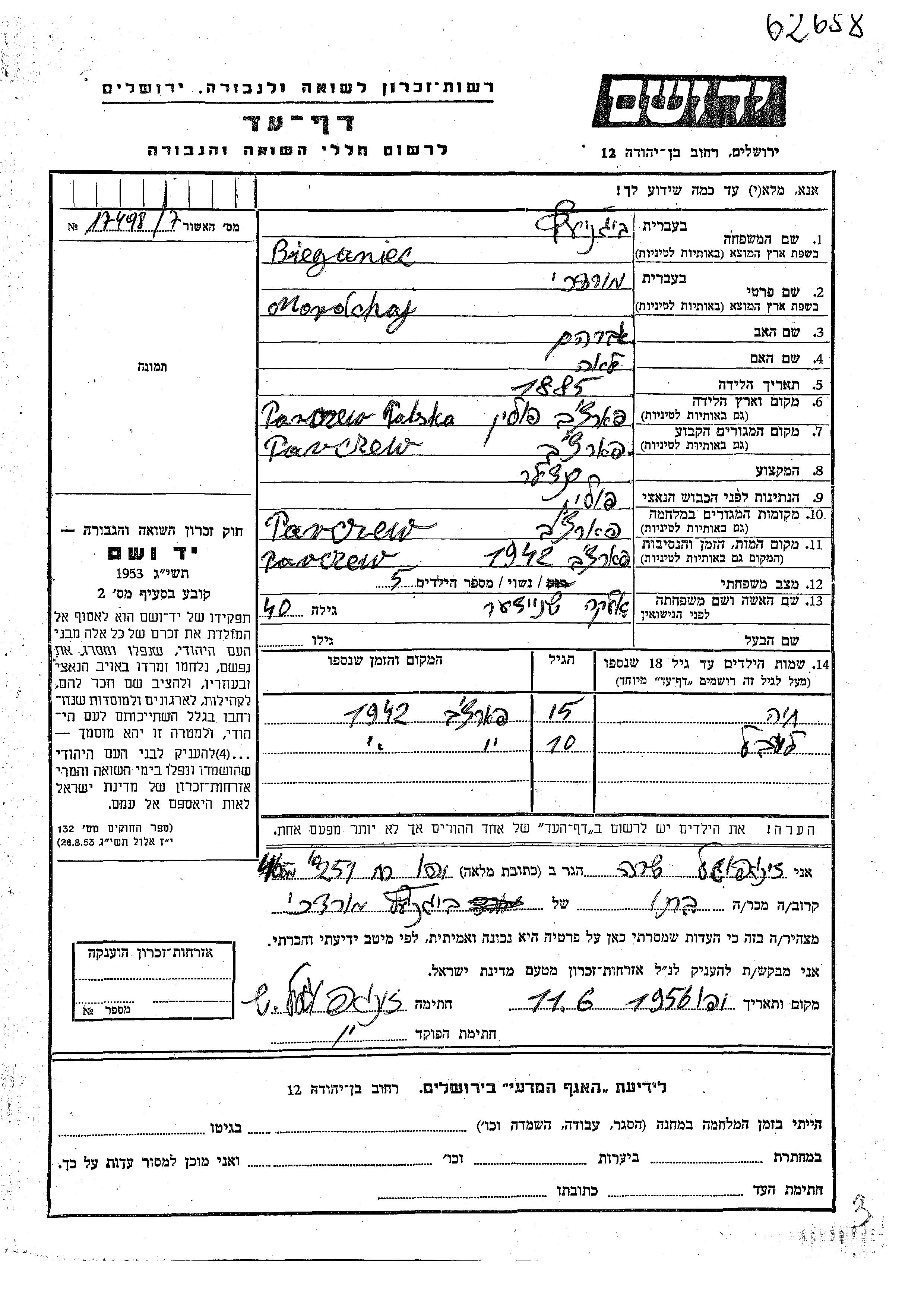 Yad Vashem - Pages of Testimony Names Memorial Collection