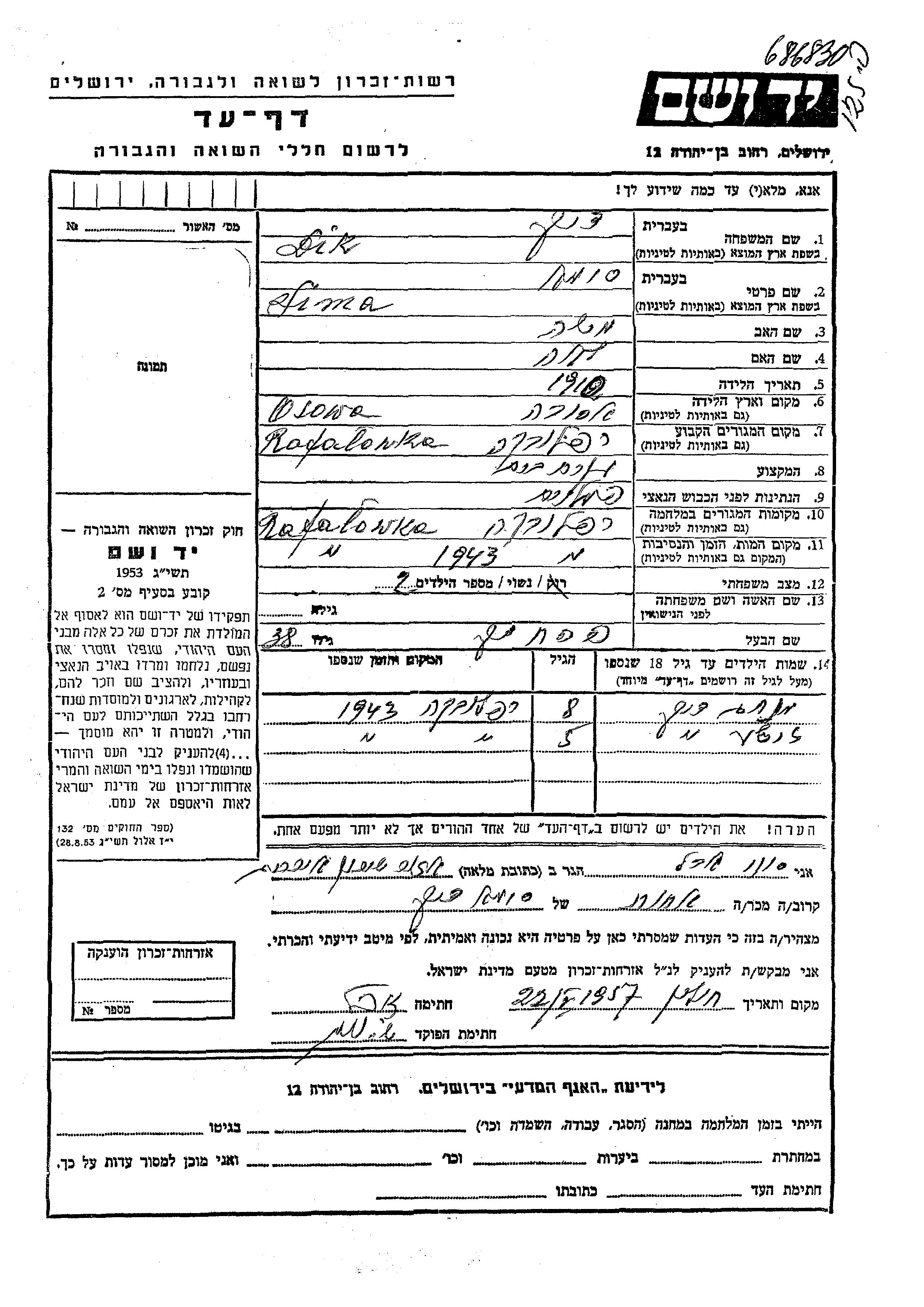 Dik Menakhem Rafałówka, Pologne Feuille de témoignage