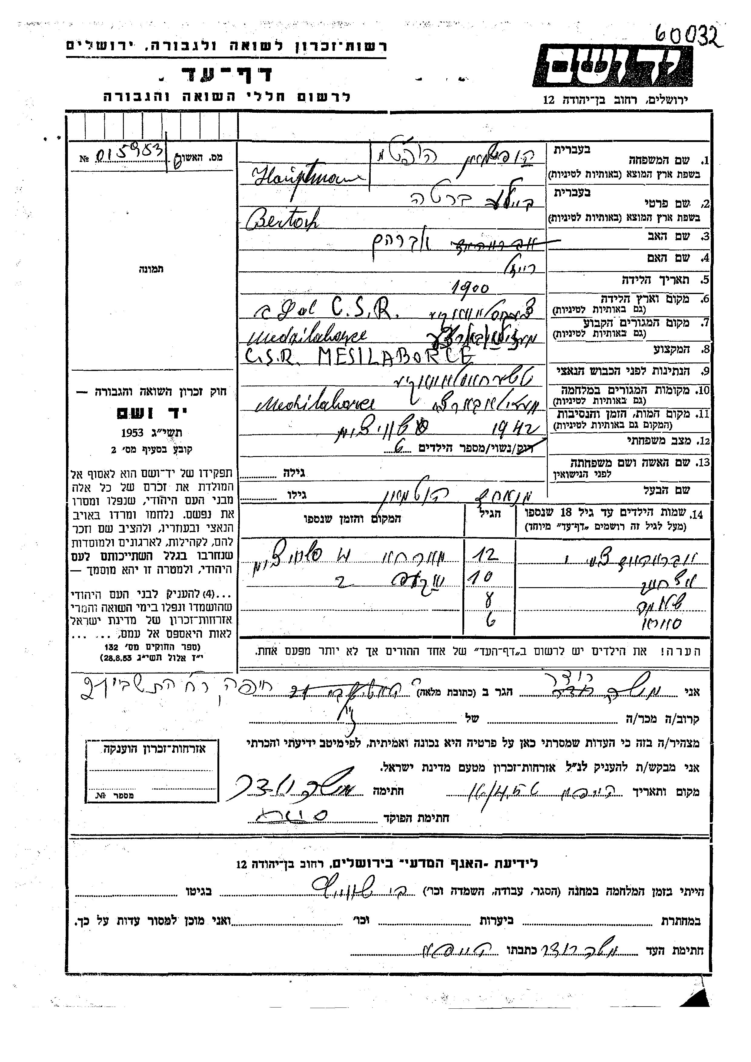 Yad Vashem - Pages of Testimony Names Memorial Collection