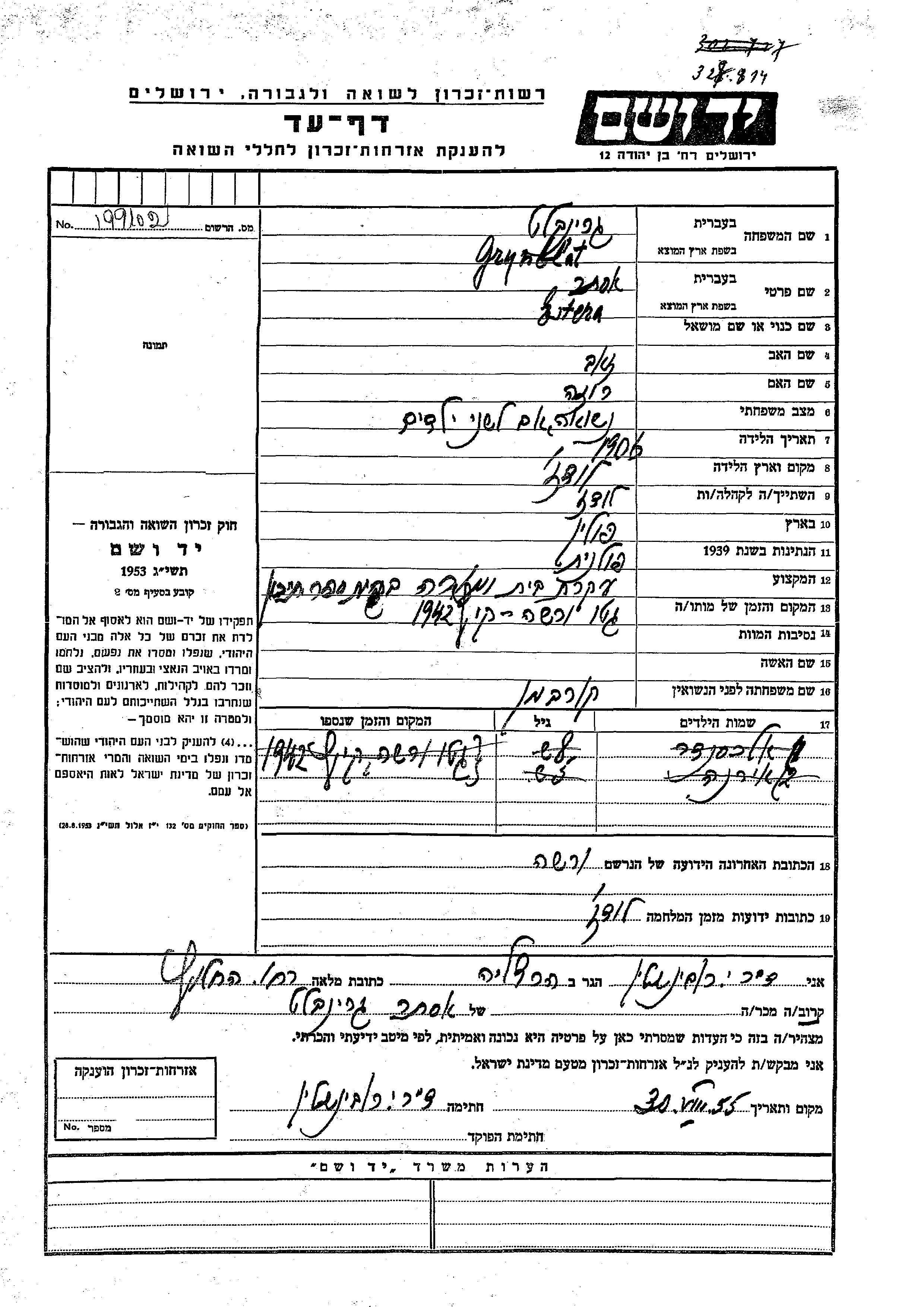 Yad Vashem - Pages of Testimony Names Memorial Collection