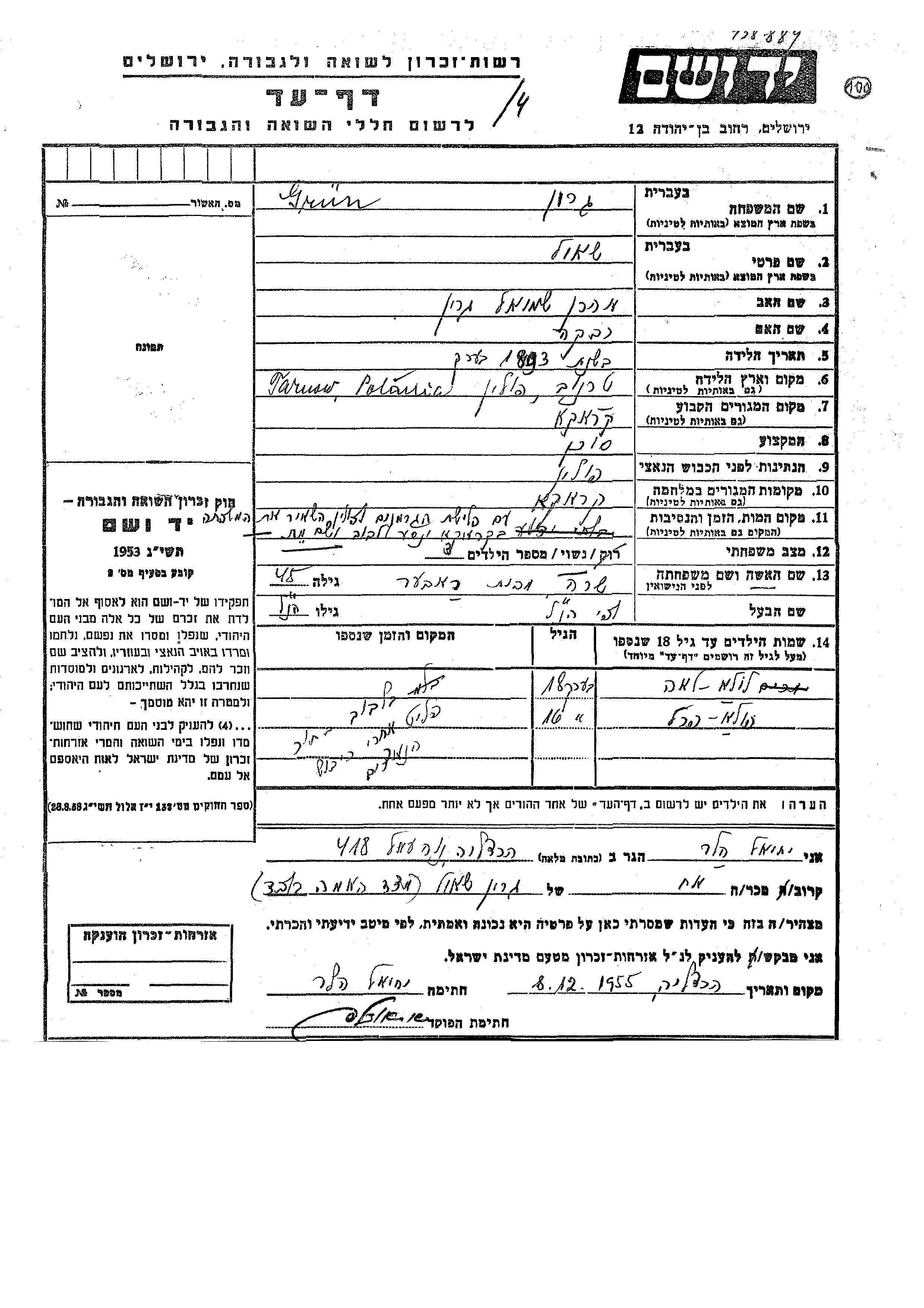Yad Vashem - Pages of Testimony Names Memorial Collection