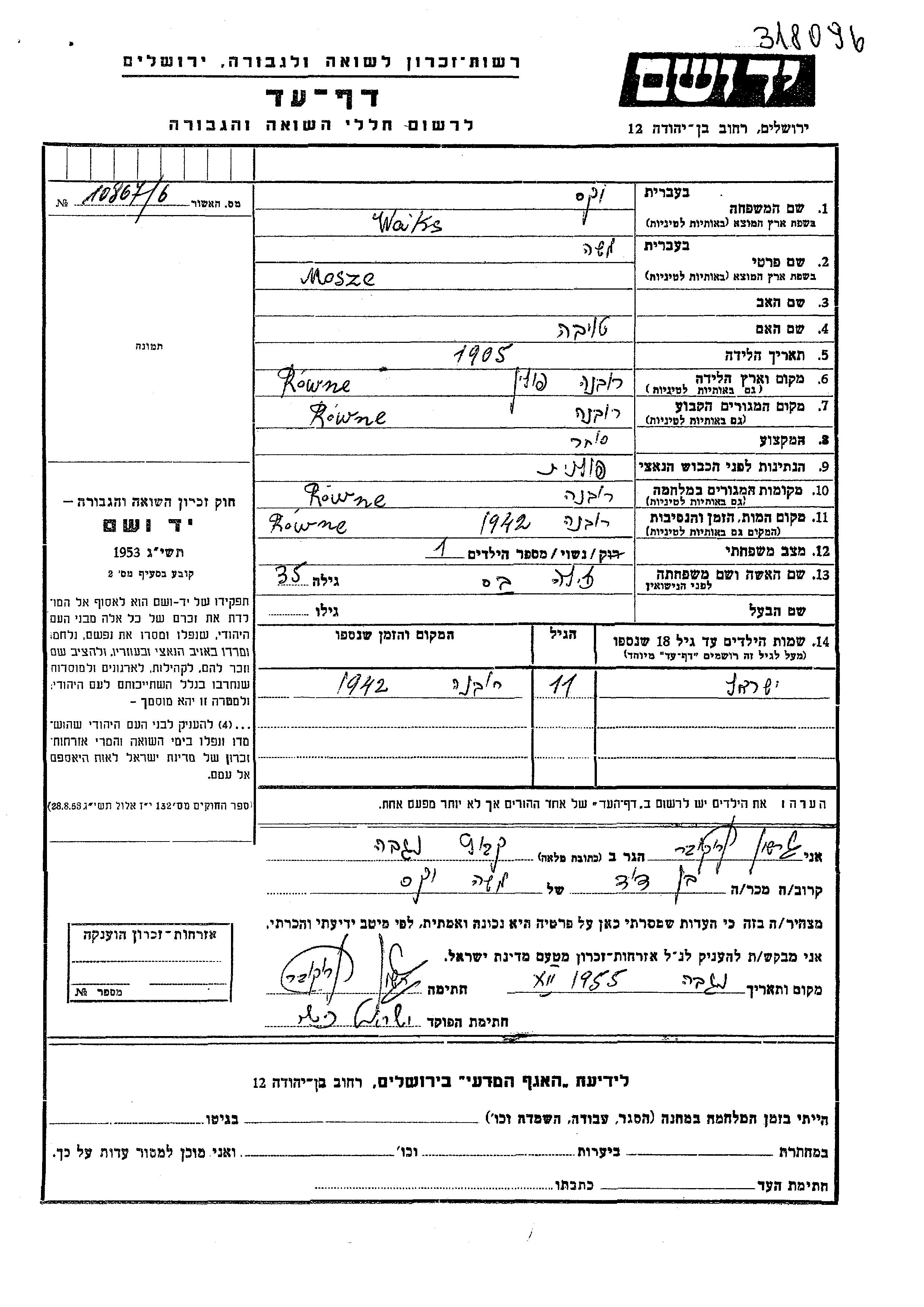 Waks Yisrael Rowne, Pologne Feuille de témoignage