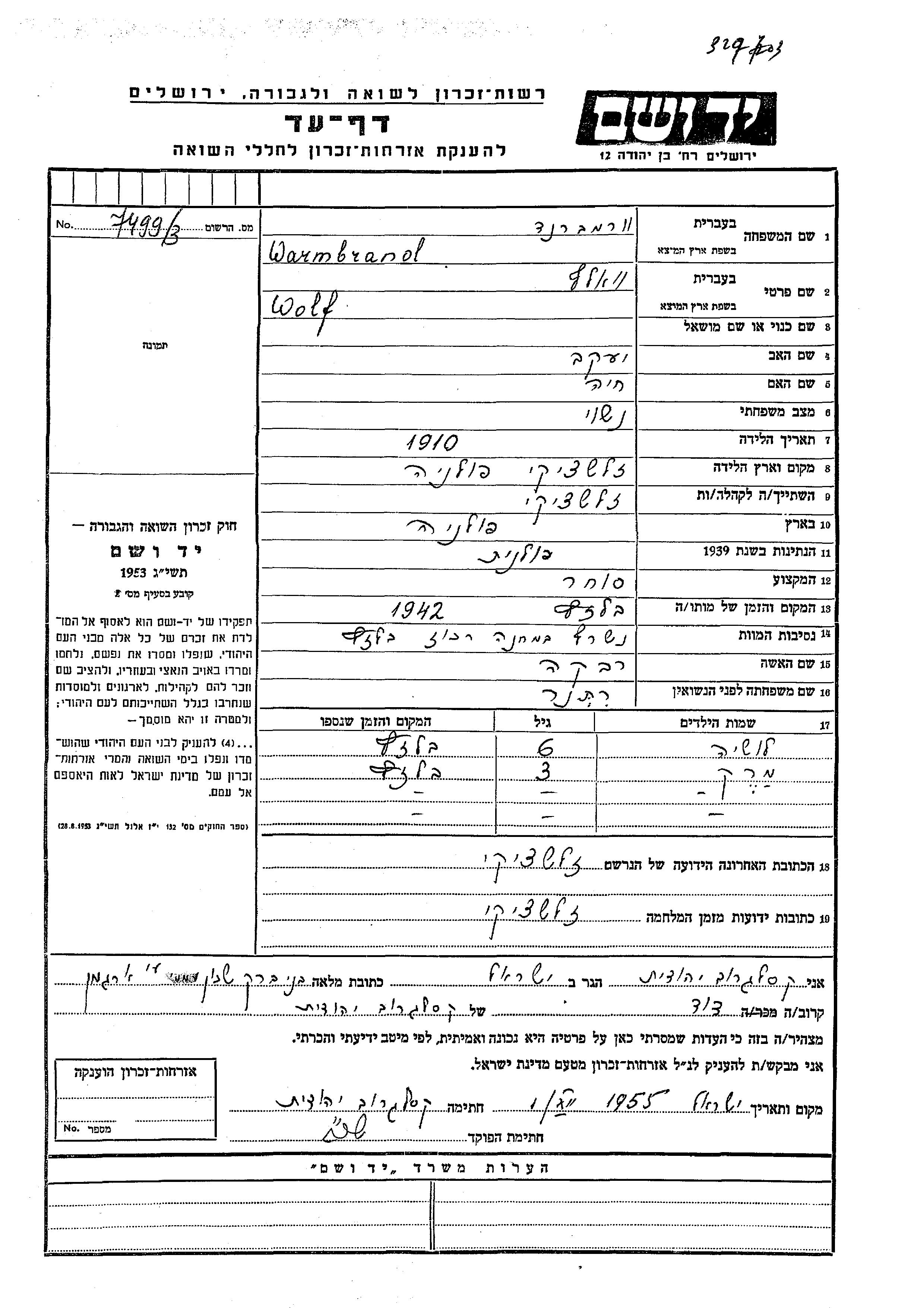 Yad Vashem - Pages of Testimony Names Memorial Collection
