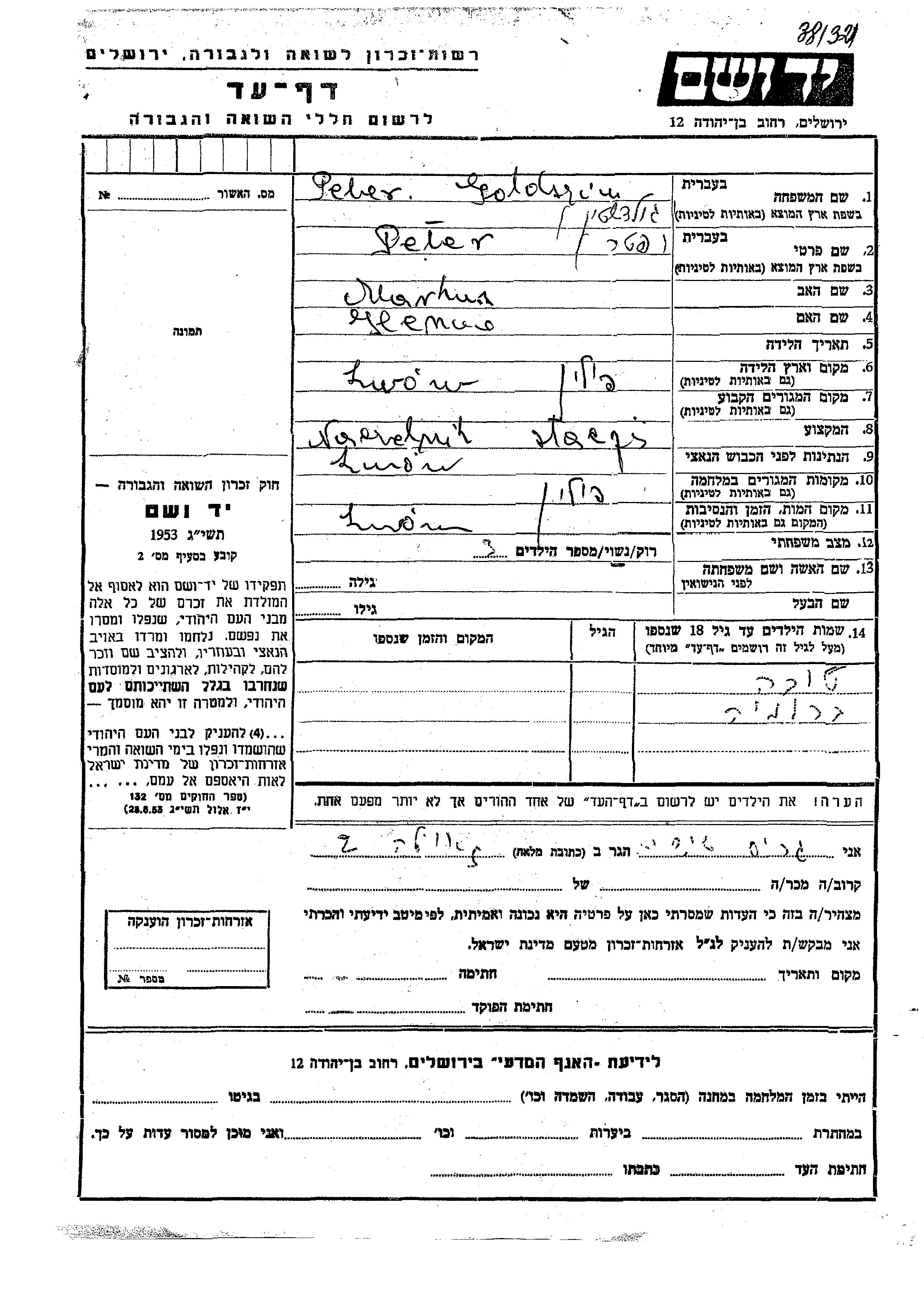 Yad Vashem - Pages of Testimony Names Memorial Collection