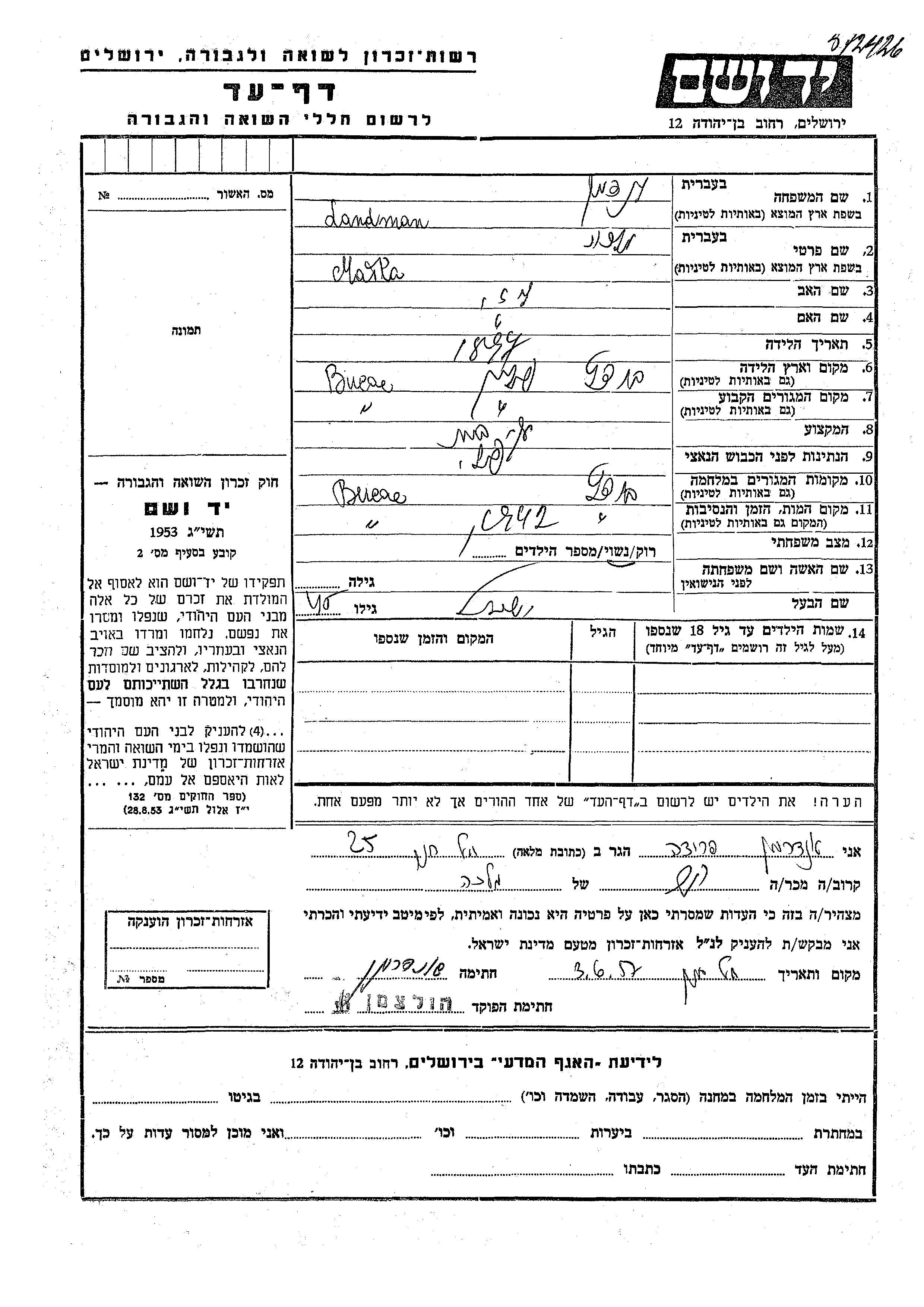 Yad Vashem - Pages of Testimony Names Memorial Collection