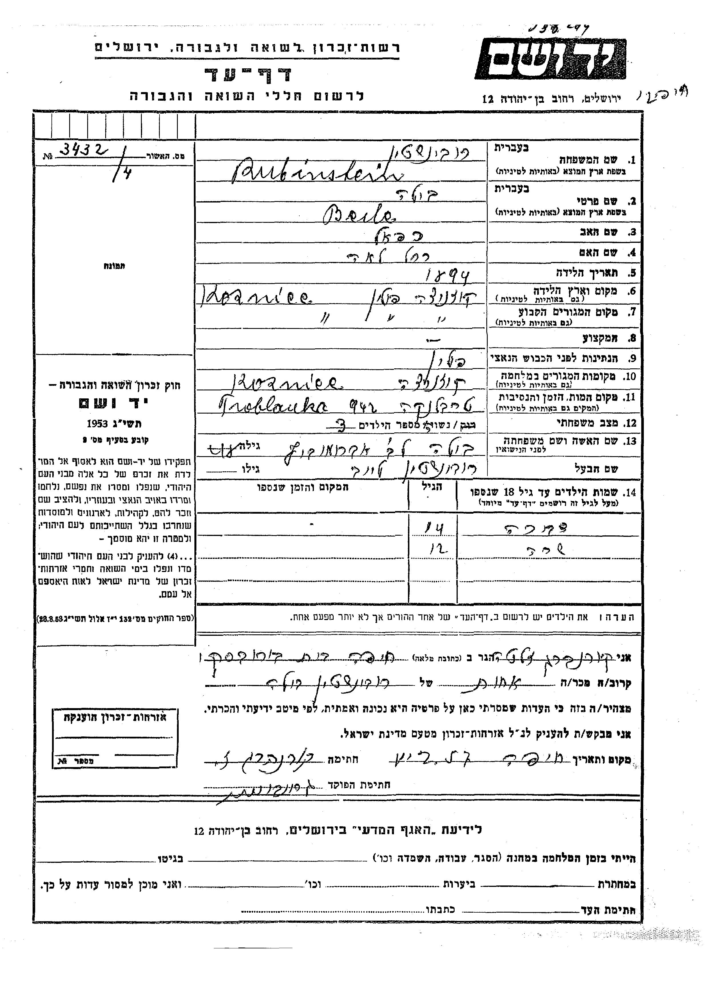 Yad Vashem - Pages of Testimony Names Memorial Collection