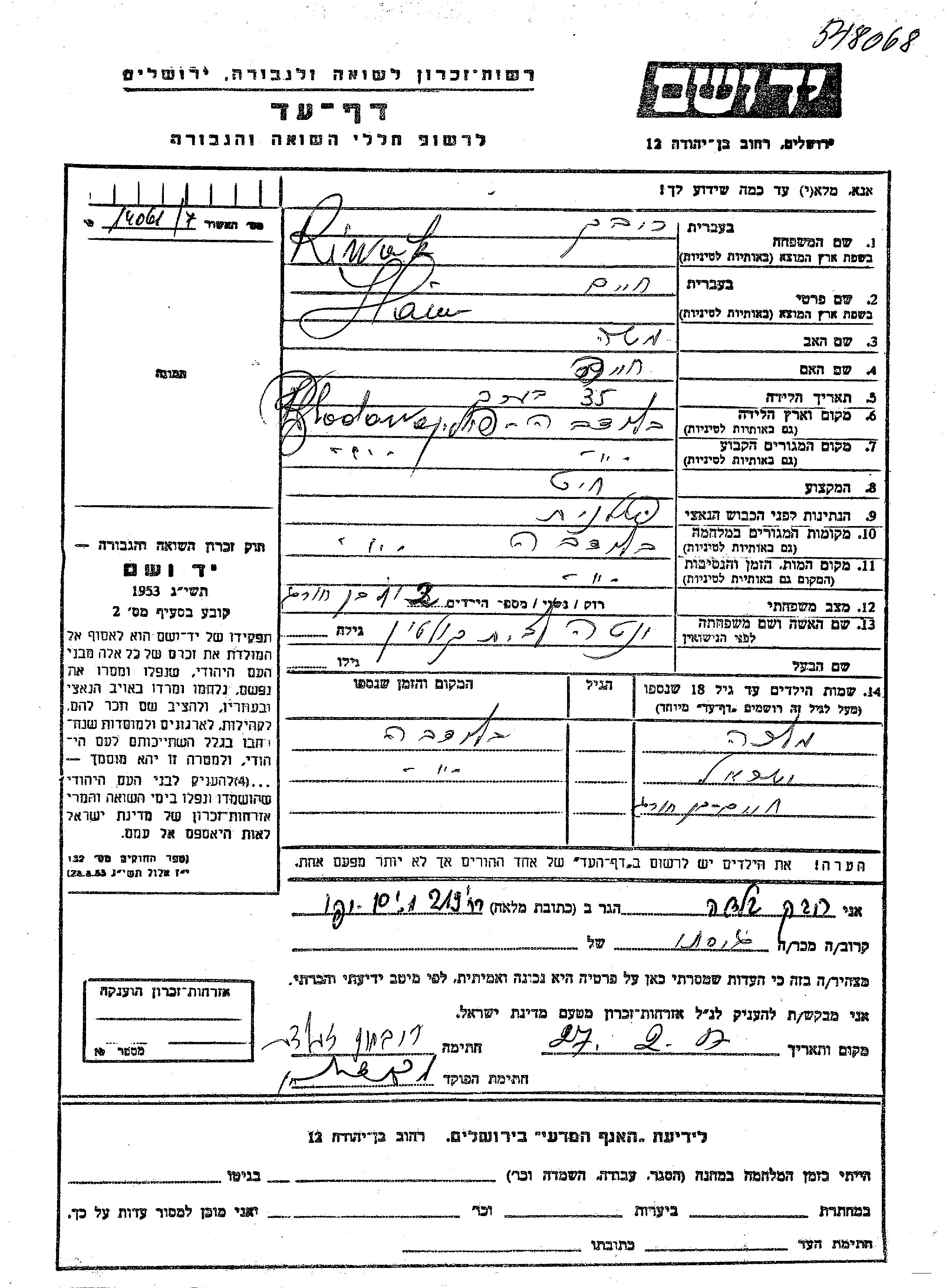 Yad Vashem - Pages of Testimony Names Memorial Collection