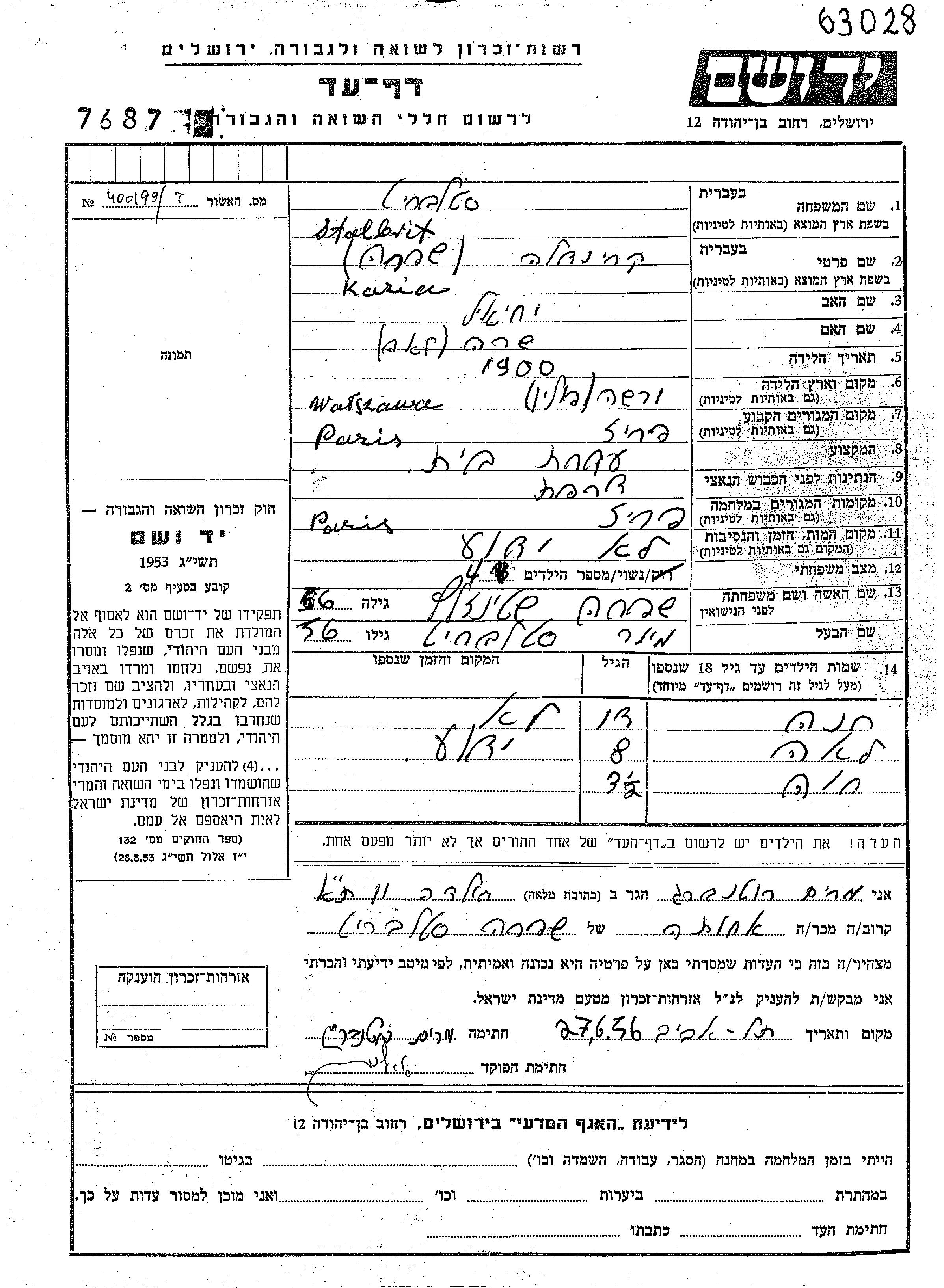 Yad Vashem - Pages of Testimony Names Memorial Collection