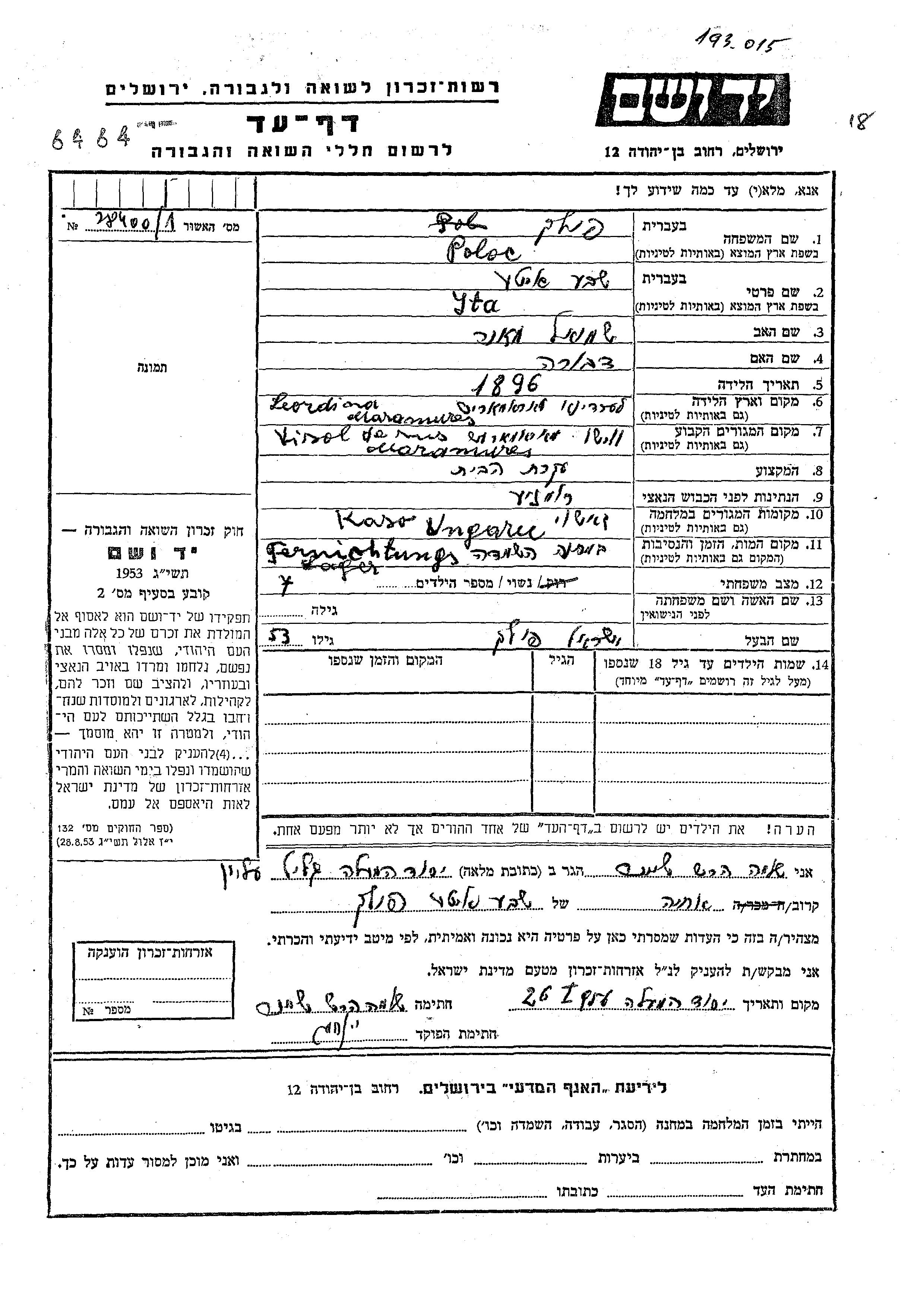 Yad Vashem - Pages of Testimony Names Memorial Collection