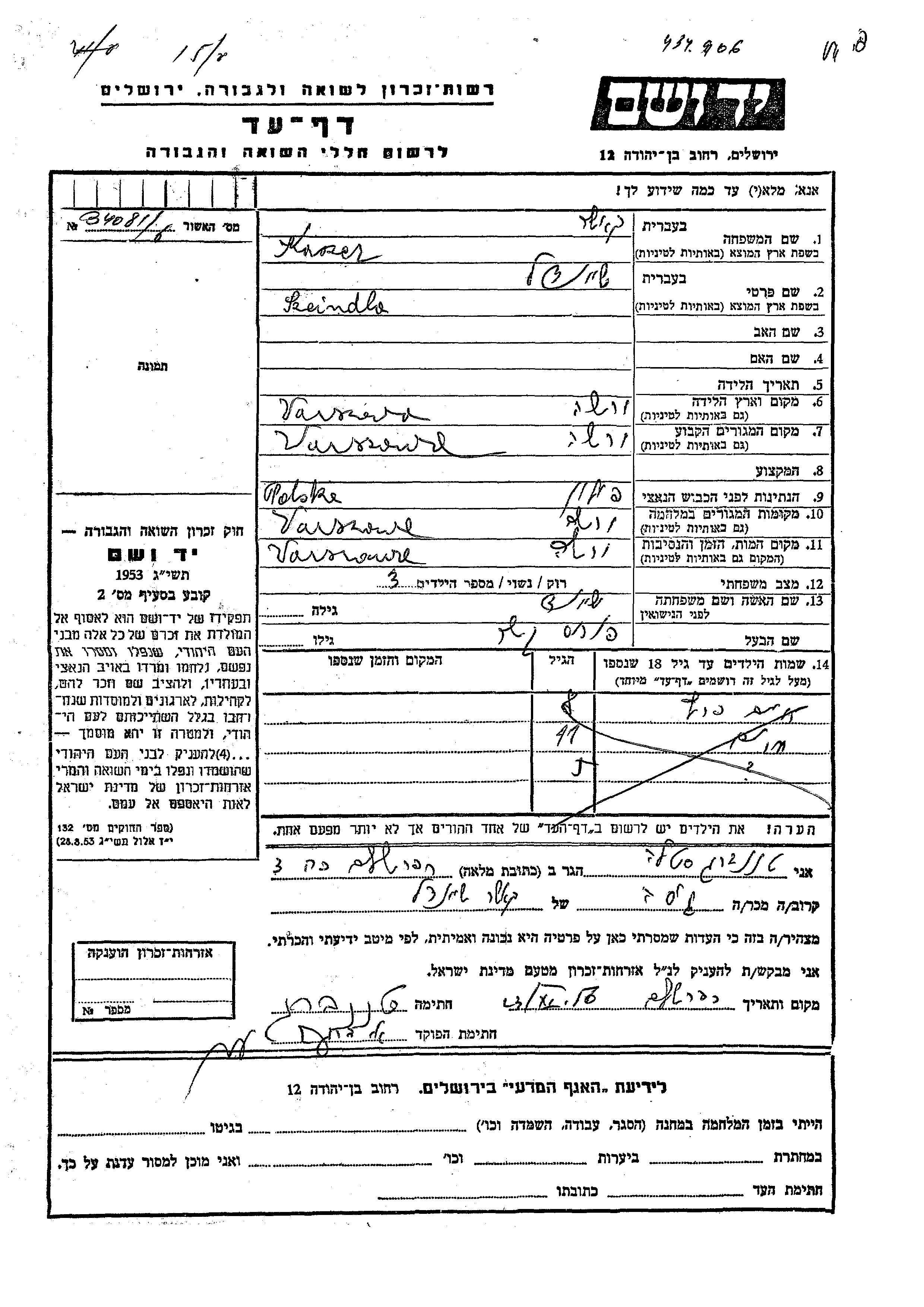 Yad Vashem - Pages of Testimony Names Memorial Collection