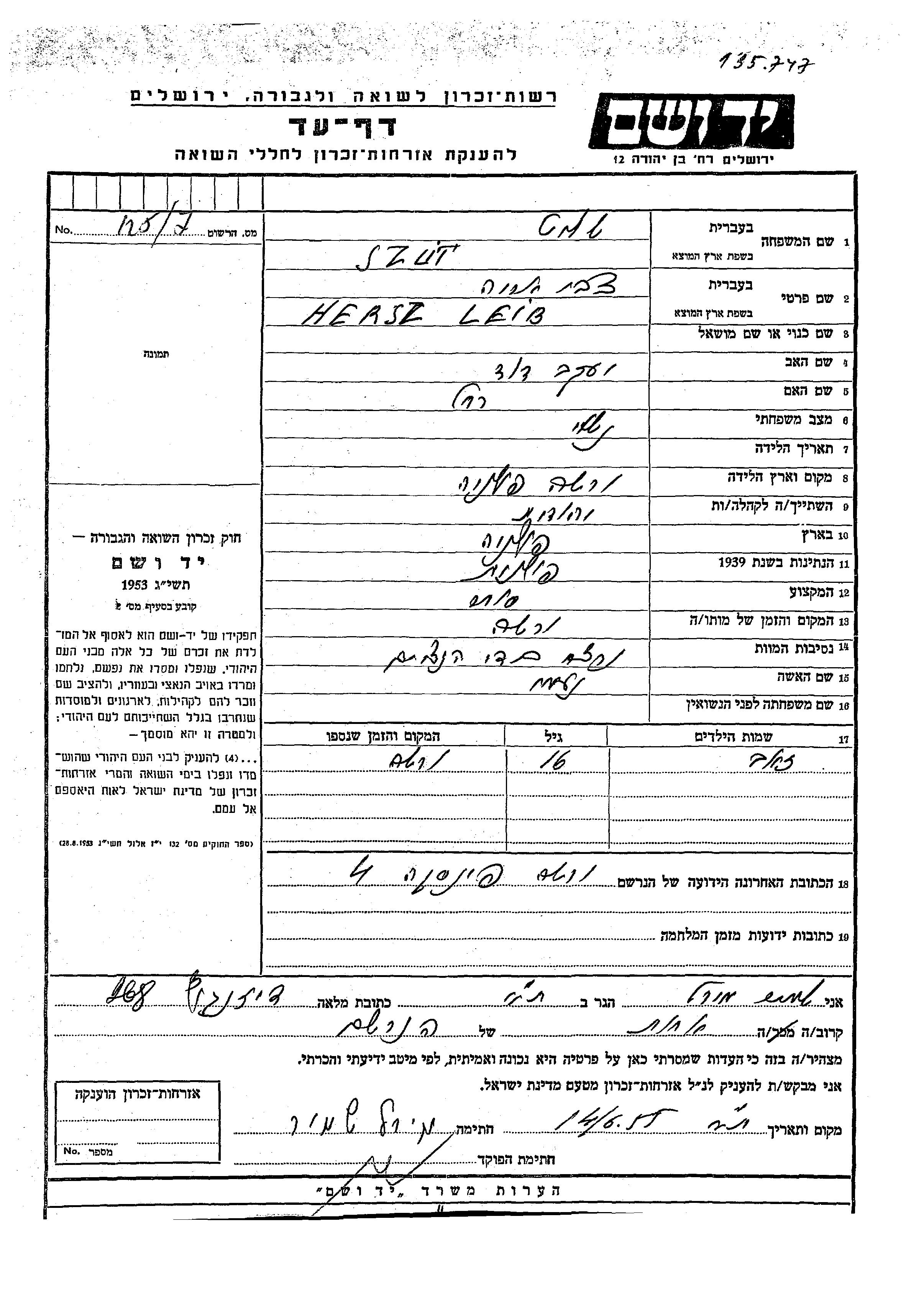 Yad Vashem - Pages of Testimony Names Memorial Collection