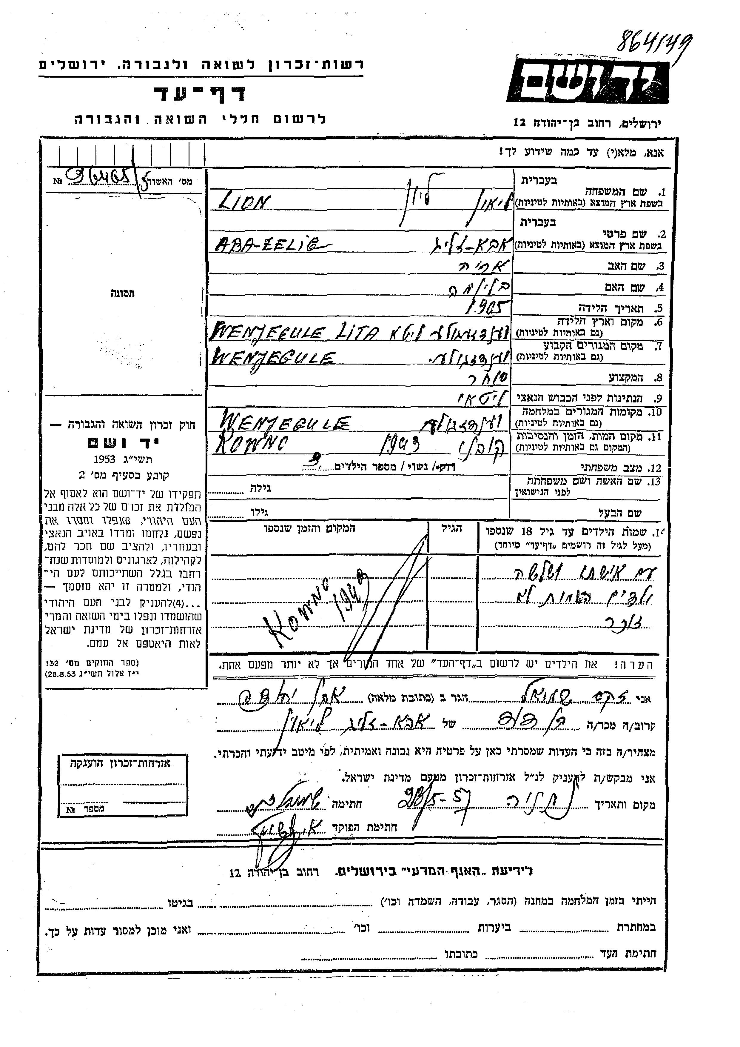 Yad Vashem - Pages of Testimony Names Memorial Collection